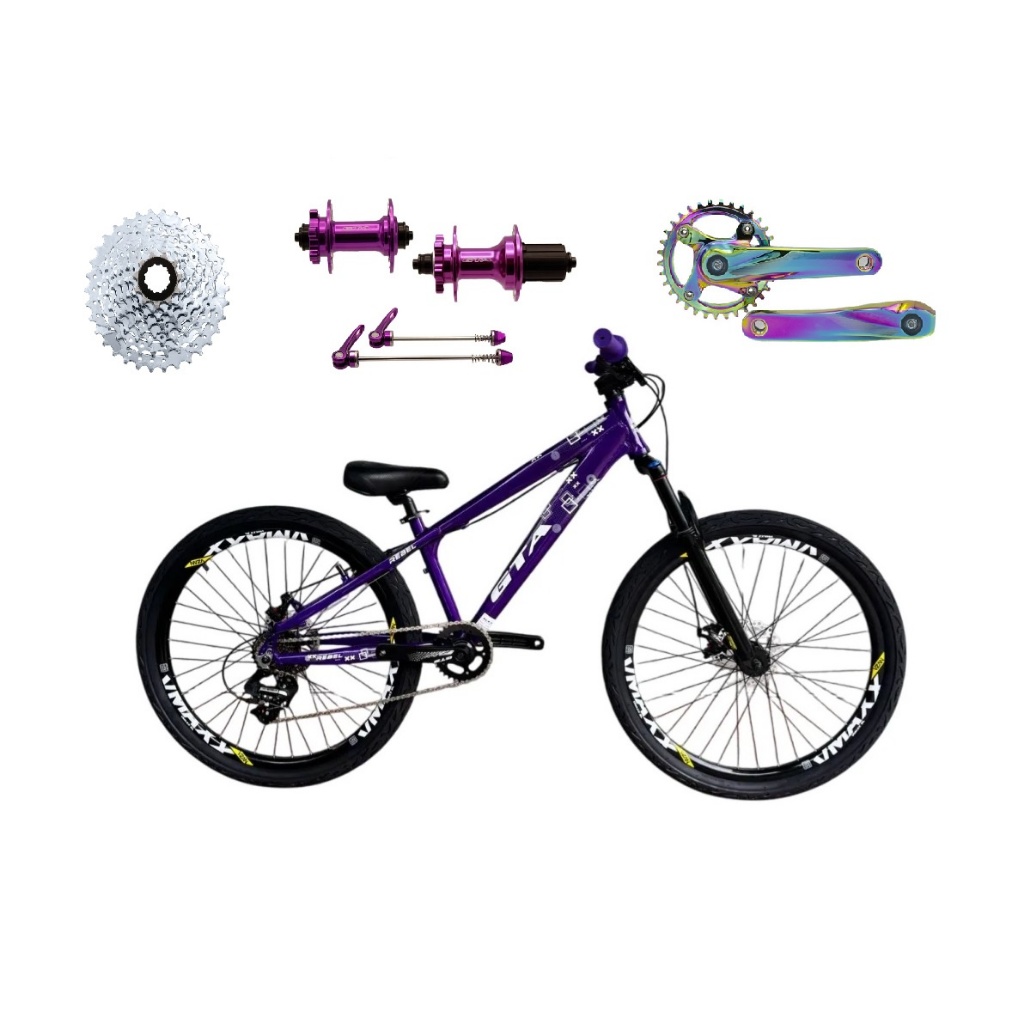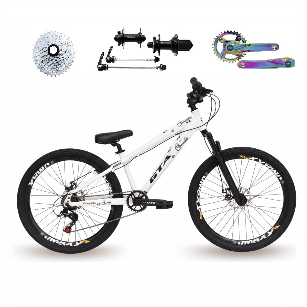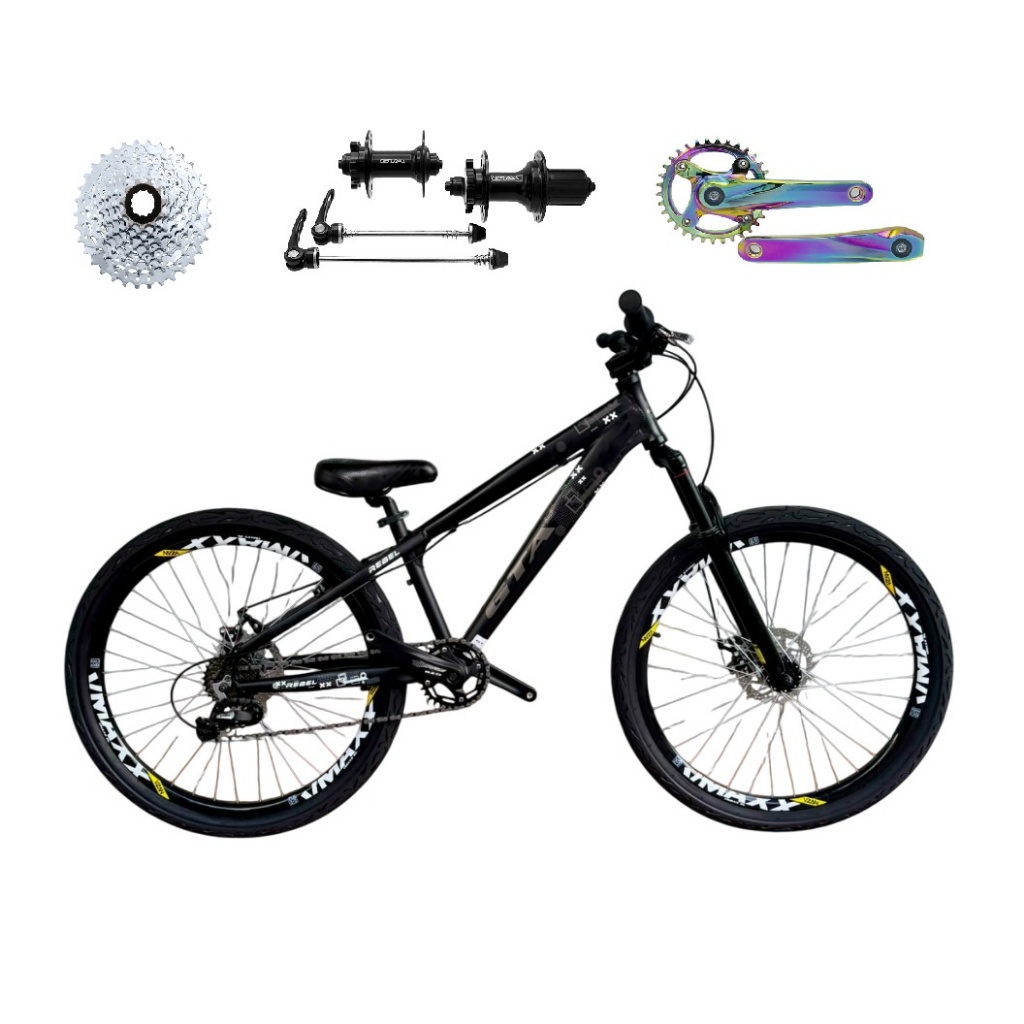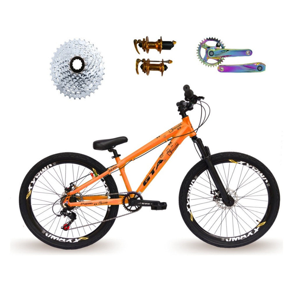 Bicicleta Aro 26 Gta Rebel Single K7 8v Freeride Cubo Barulhento Aro Vmaxx DH Freio a Disco Pneu Flame Pedivela Camaleão