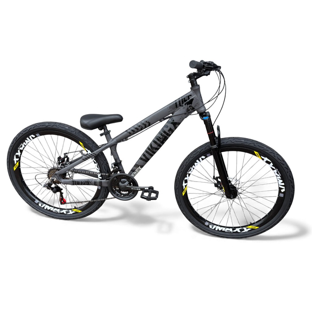 Bicicleta Aro 26 Vikingx Tuff X25 Freeride Downhill 21v Aro Vmaxx DH Freio a Disco Garfo Suspensão Pneu Flame