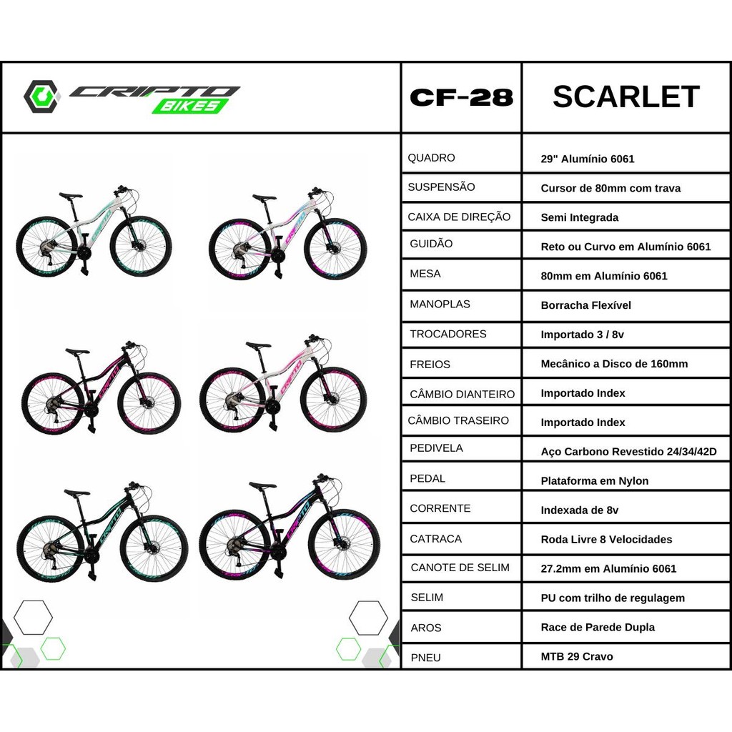 Bicicleta Aro 29 Cripto 24 Marchas Freio Disco c/Suspensão