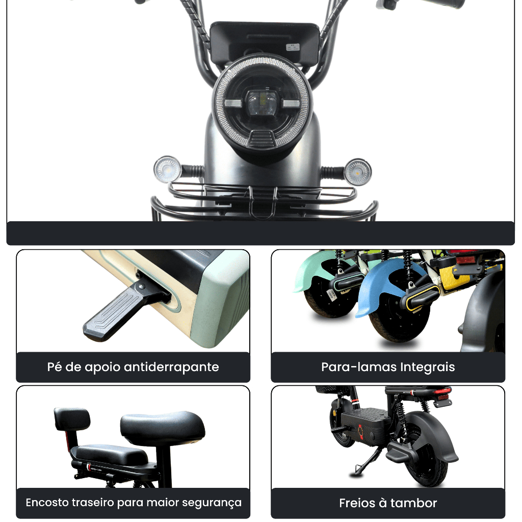 Bicicleta Elétrica scooter NADO C2 1000w 32km/h 60km 48v 20ah Bateria Lítio removível com banco traseiro Bicicleta cores