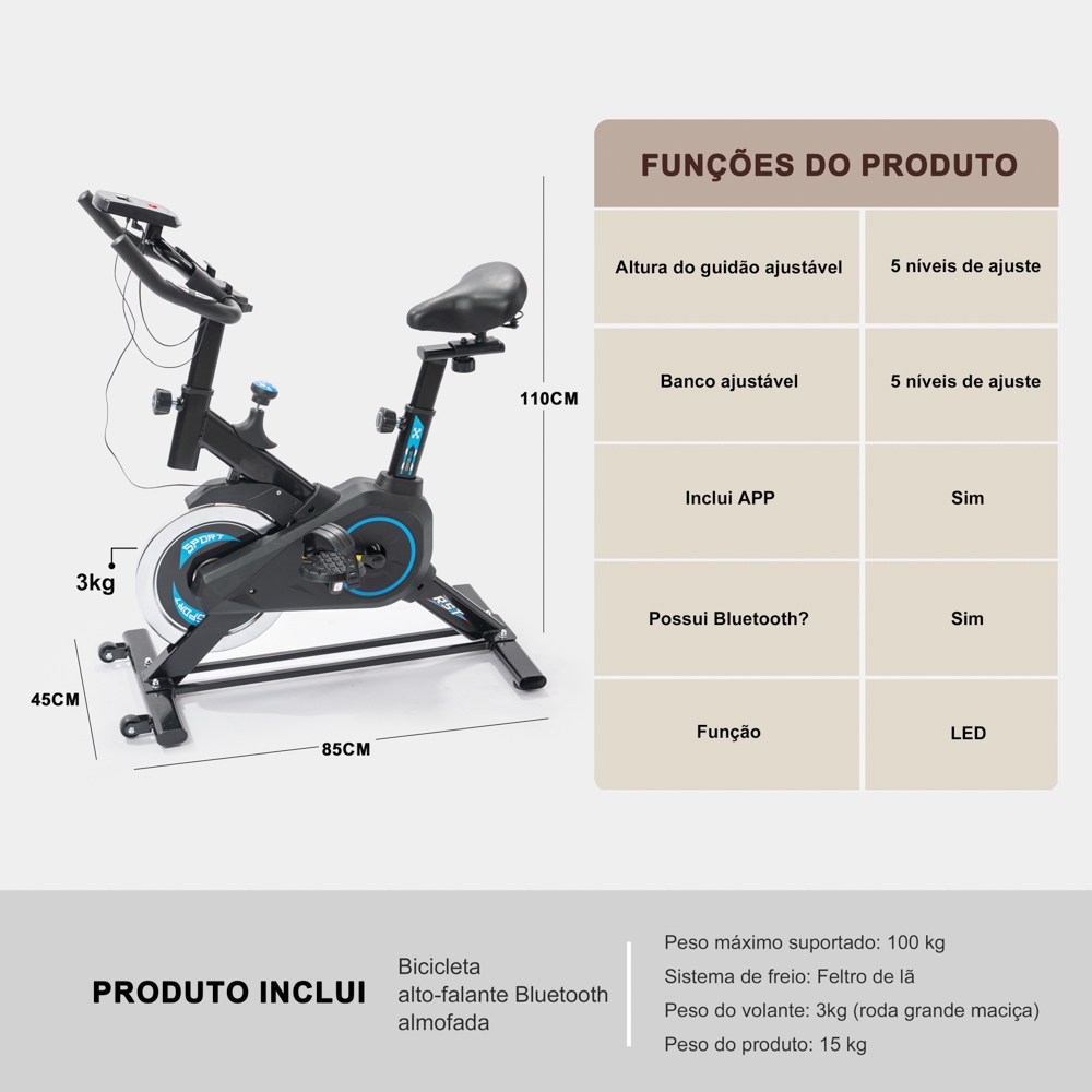 Bicicleta Ergométrica SKYBOARD Nº 1 em Vendas - Modelo Silencioso para Exercício em Casa, Conexão Bluetooth CD1210