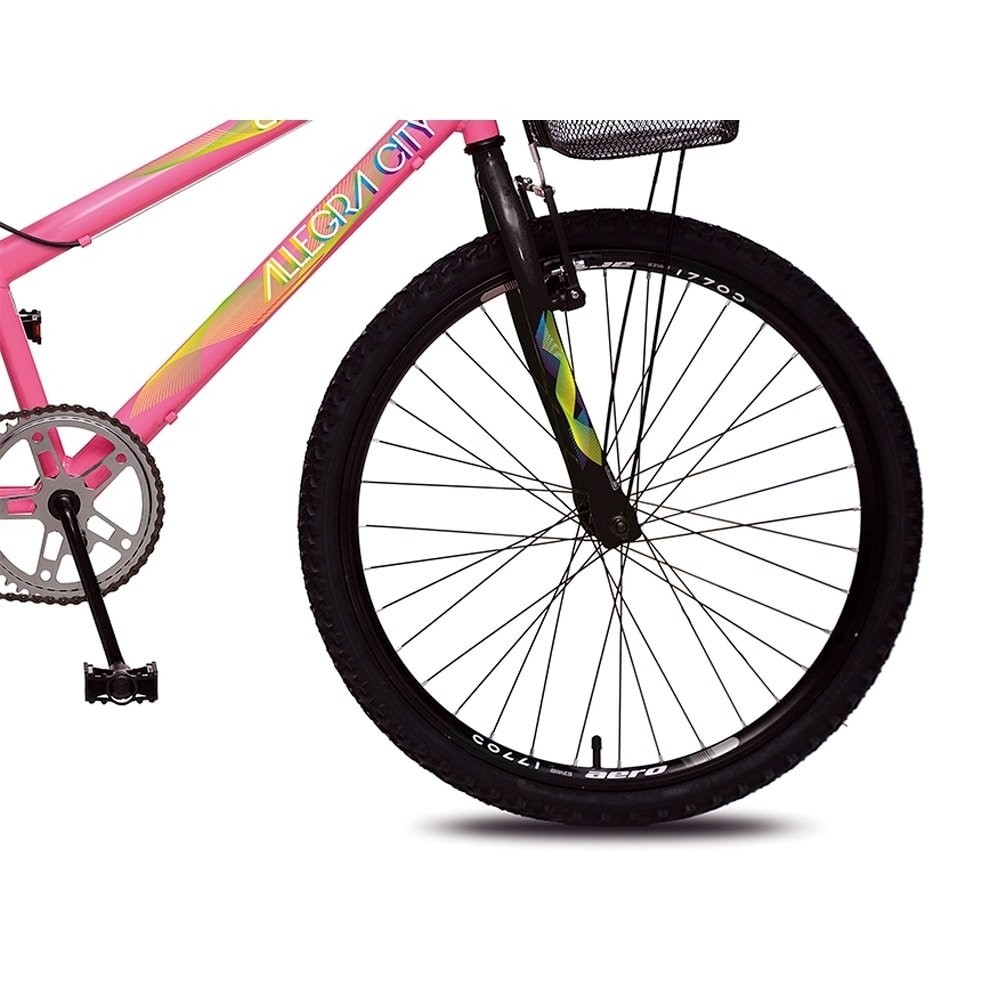 Bicicleta Juvenil Colli Allegra City, Aro 24, Quadro Tamanho 14,Aço Carbono, Freios VBrake, Rosa Neon