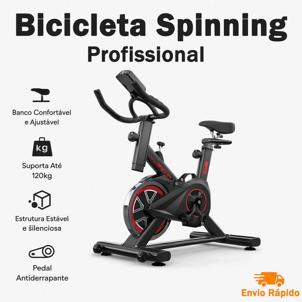 Bicicleta Spinning Ergométrica Profissional Silenciosa Assento Ajustável Suporta 120kg