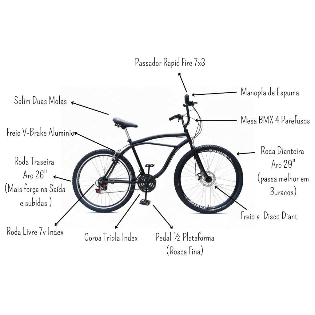 Bicicleta aro 26 Beach Caiçara Quadro Reforçado Para Motor Raio Groso Freio a Disco