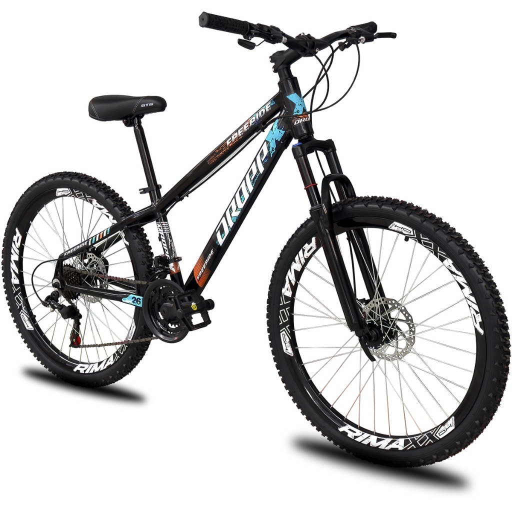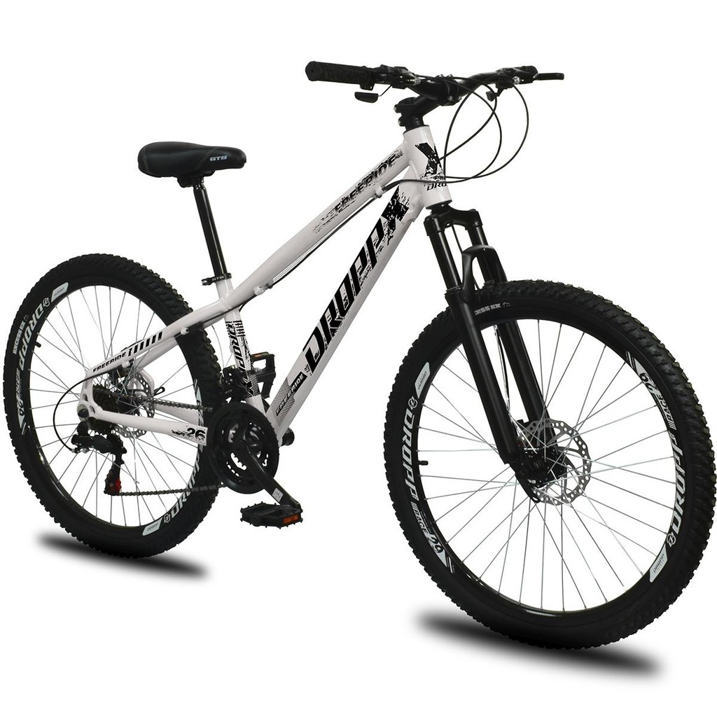 Bicicleta aro 26 Dropp Freeride Alumínio 21 Vel Marchas Câmbios Shimano Freios a disco