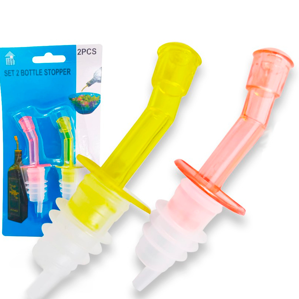 Bico Dosador Plástico Com Tampa Azeite Garrafa Kit Com 2 Unidades Salada Culinária Cozinha
