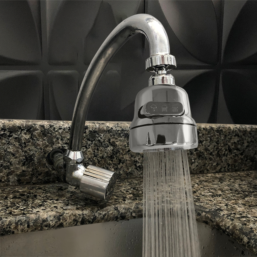 Bico de Torneira Arejador Chuveirinho Cromado Gourmet 360 Abs ponteira de torneira 3 jatos
