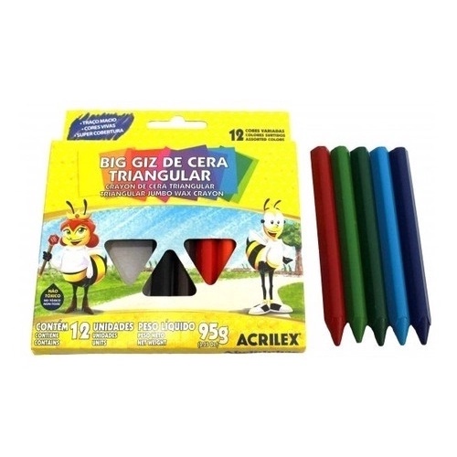 Big Giz De Cera Triangular 95g Kit Com 2 Caixas Gizão Jumbo Acrilex 12 Cores Caixa