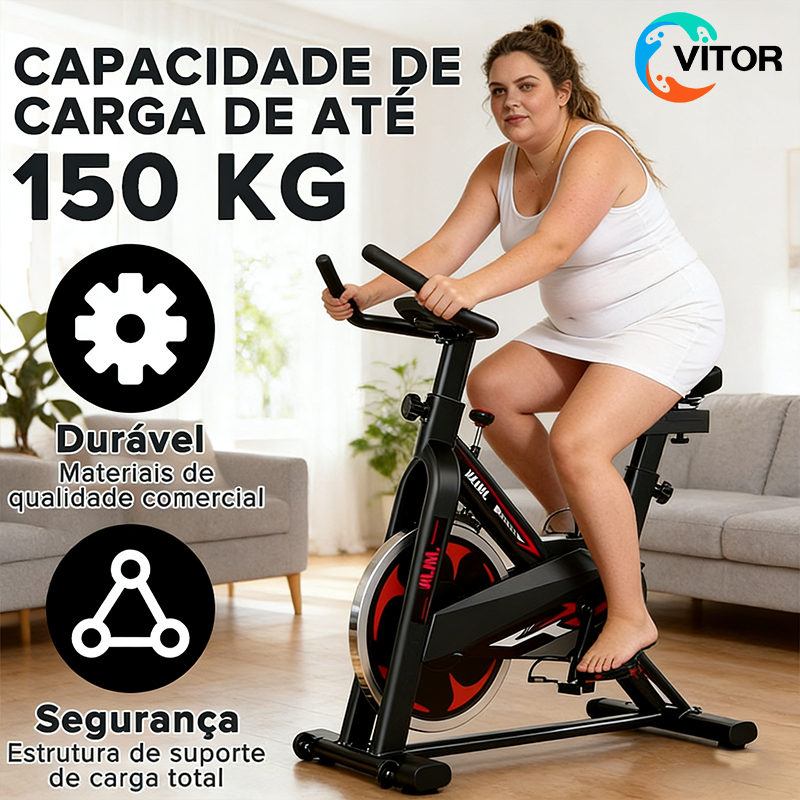 Bike de Spinning 150Kg VITOR - A Mais Buscada! Inércia 10Kg, Totalmente Segura e Estável para Home Gym