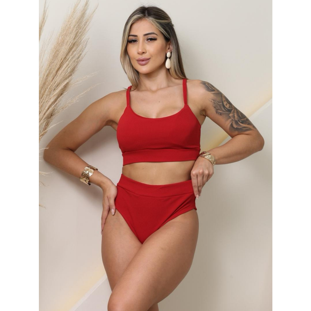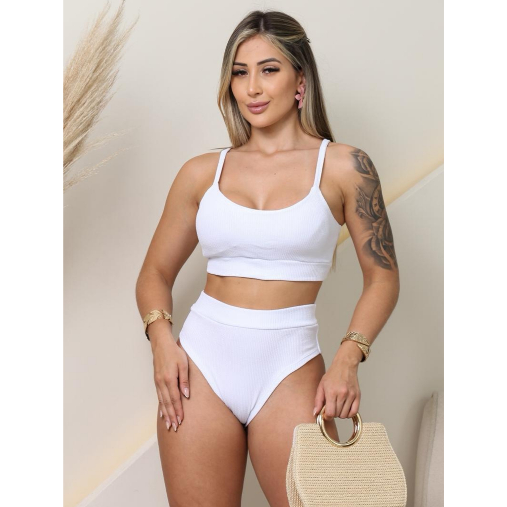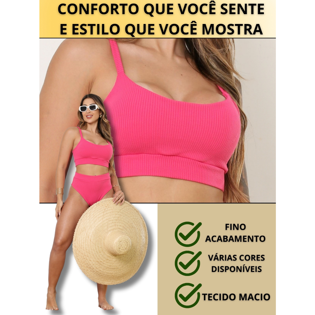 Bikini Cintura Alta Feminina Calcinha Hot Pants Forro Anarruga /Top com Bojo/Conjunto moda Praia Verão Tendencia 2026