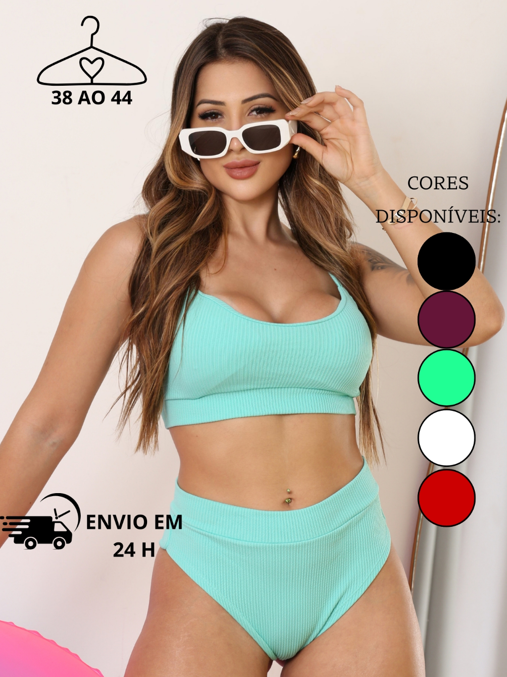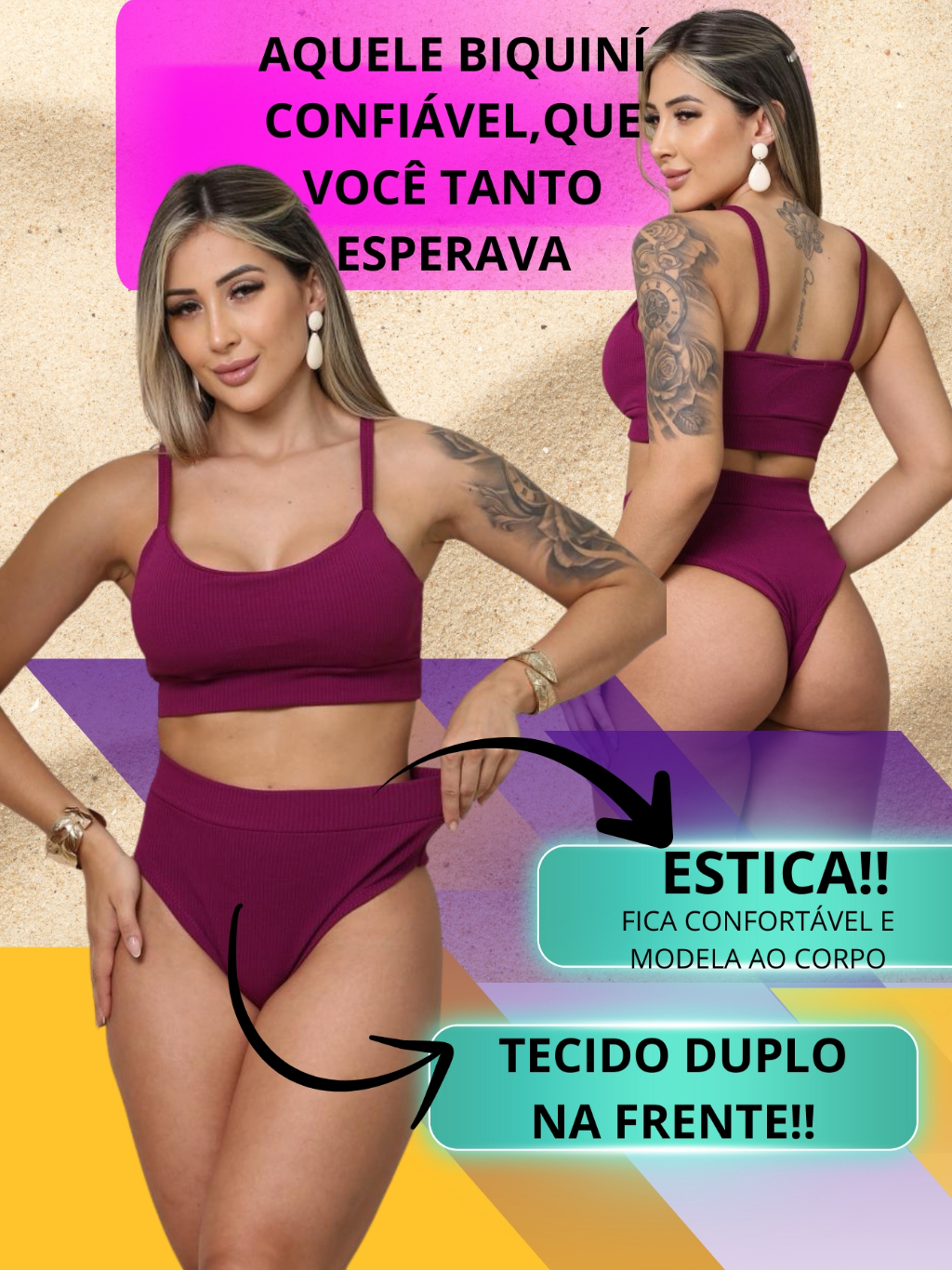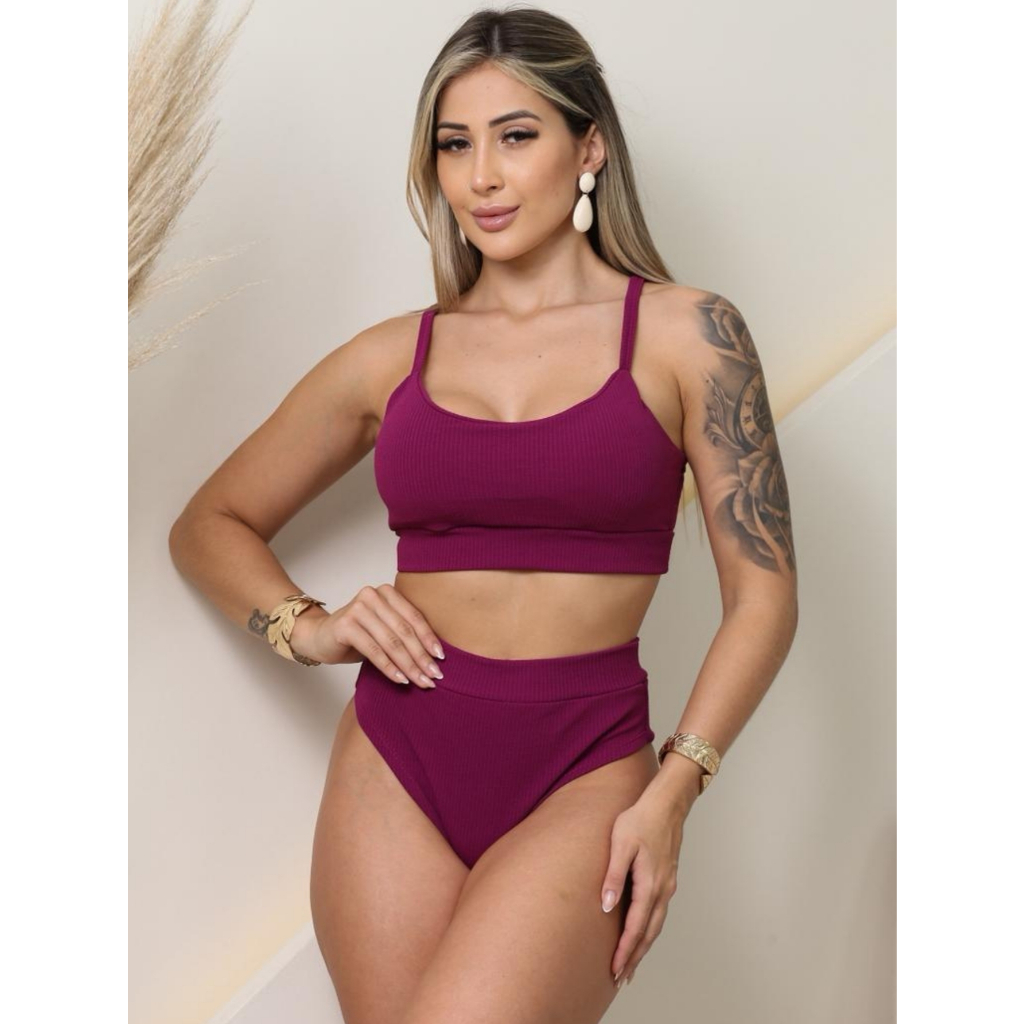 Bikini Cintura Alta Feminina Calcinha Hot Pants Forro Anarruga /Top com Bojo/Conjunto moda Praia Verão Tendencia 2026