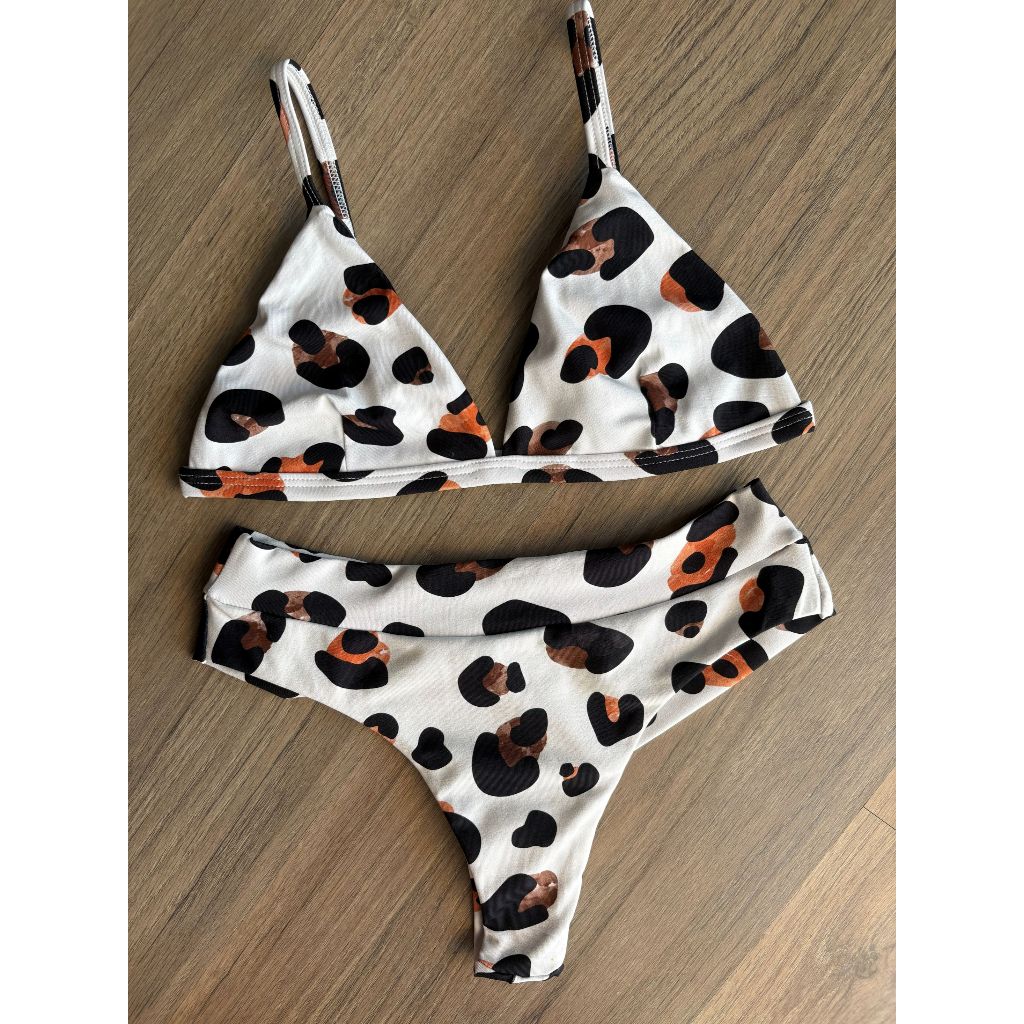 Biquíni Alça Fixa Estampado com Calcinha Fio Duplo Cintura Média Alta
