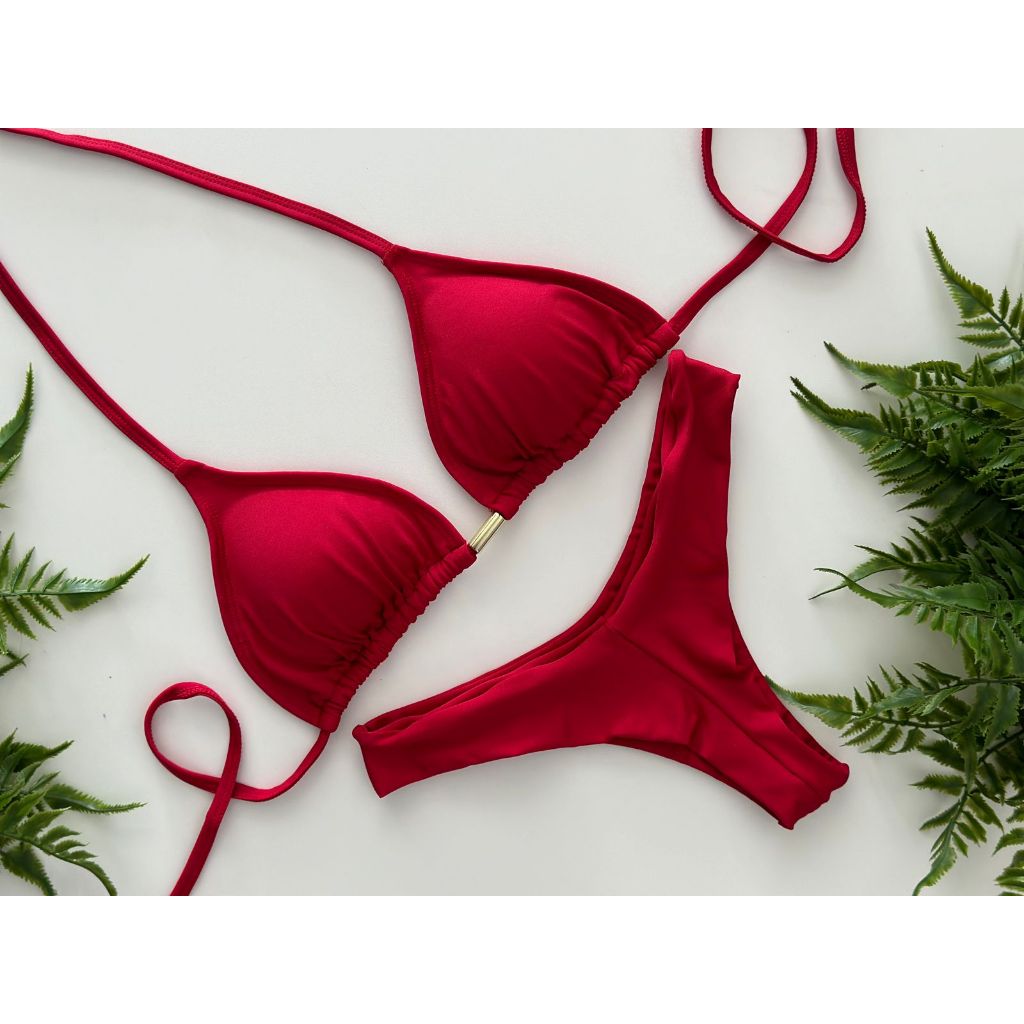Biquíni Conjunto Top Cortininha Calcinha Asa Delta Fio Duplo Bojo Removivel