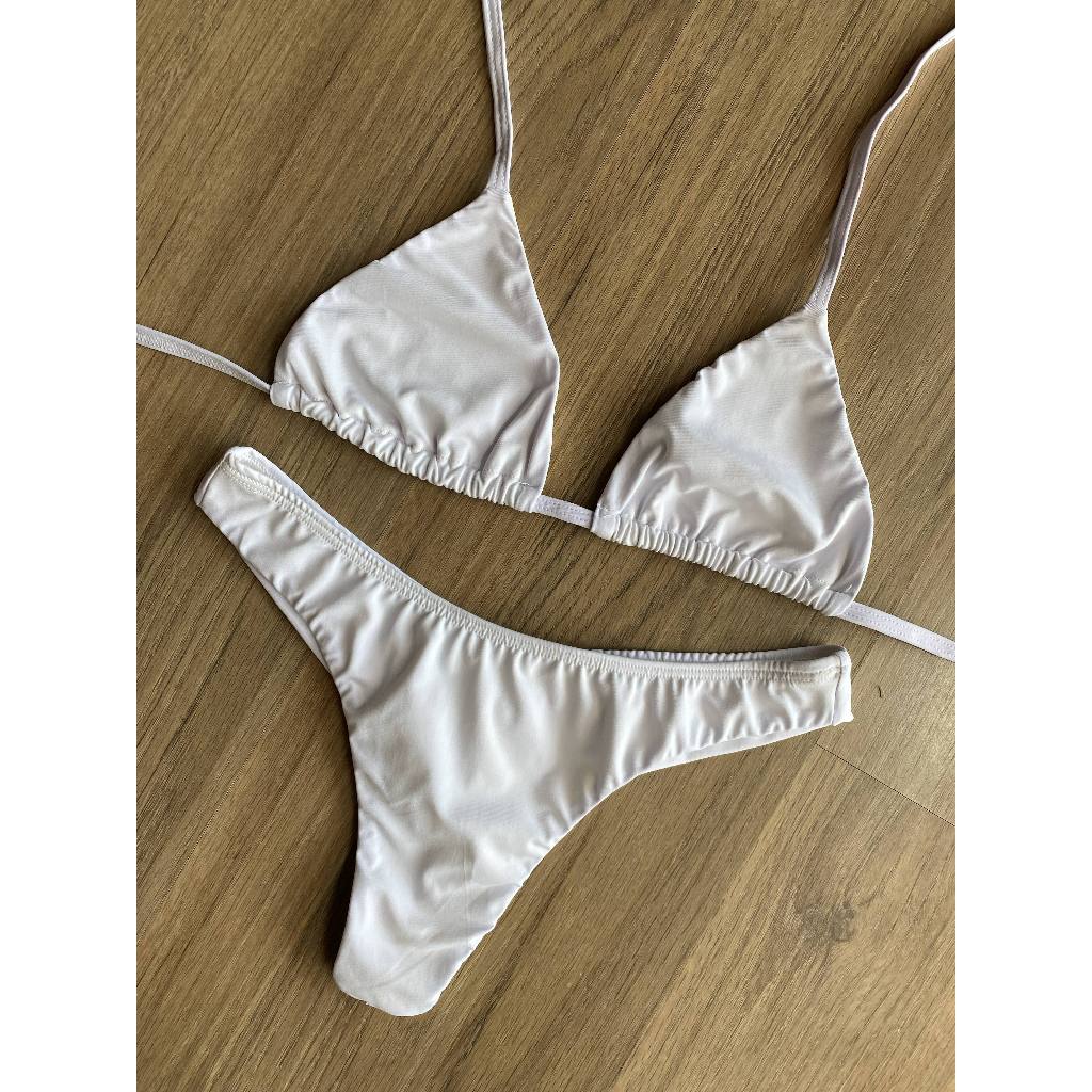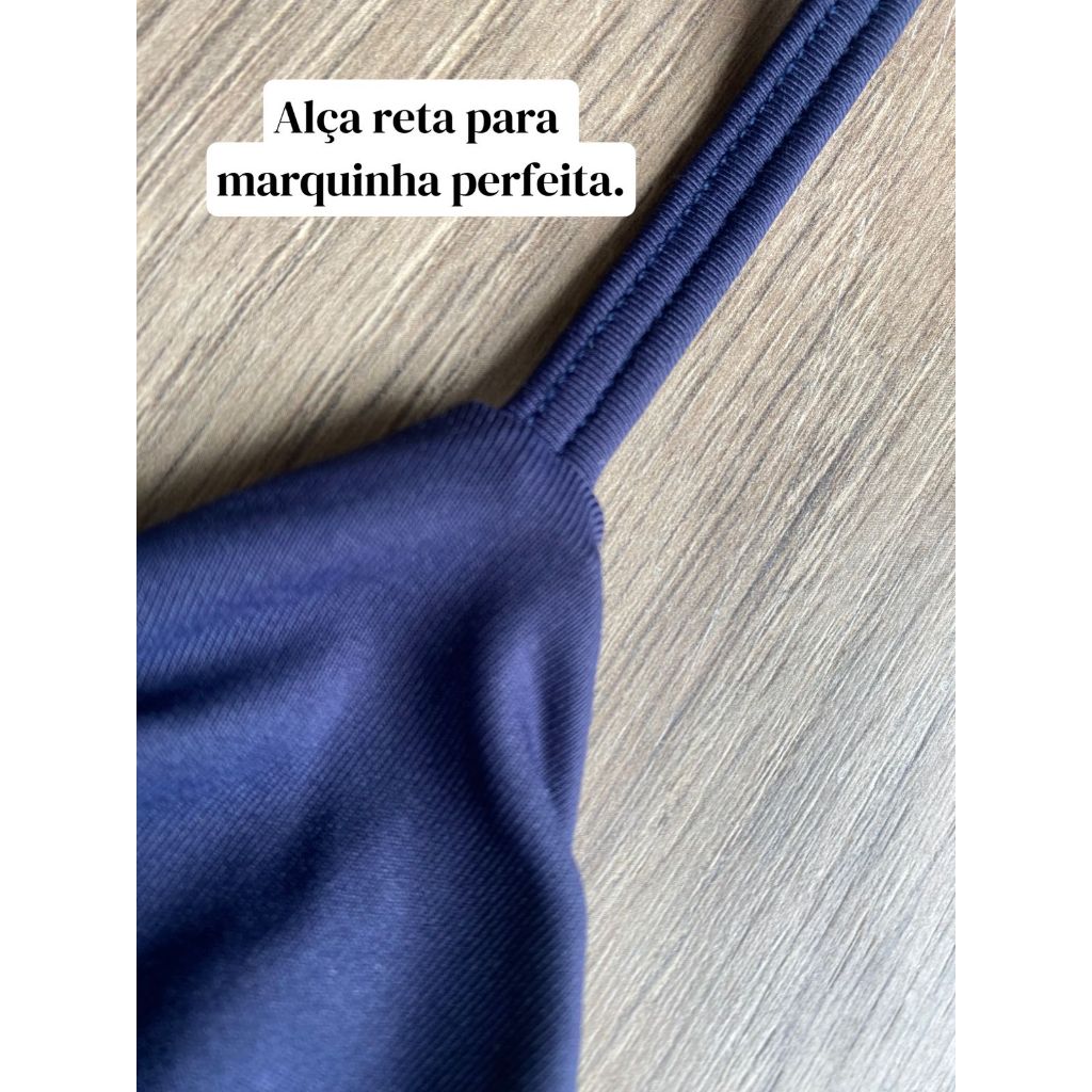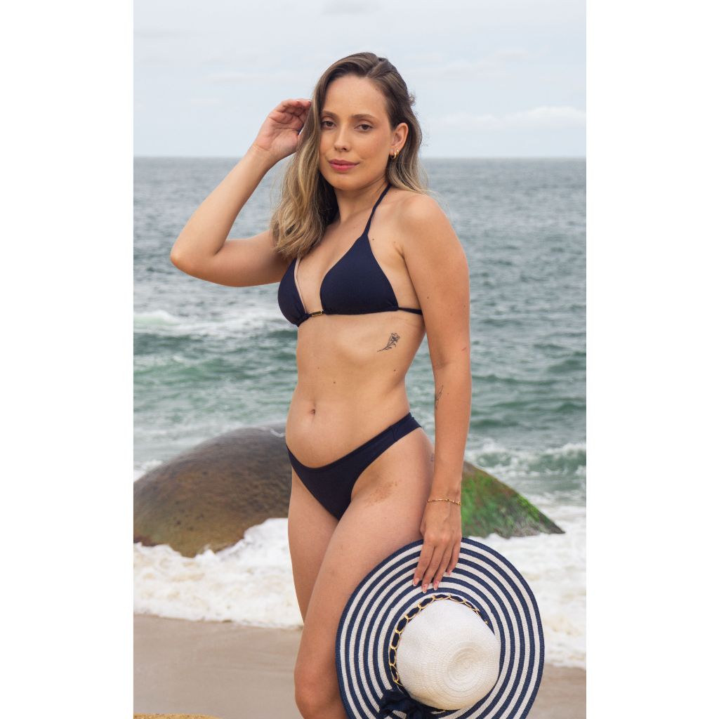 Biquíni Cortininha Clássico Azul Marinho Top cortininha e Calcinha Asa Delta Fio Dental Duplo