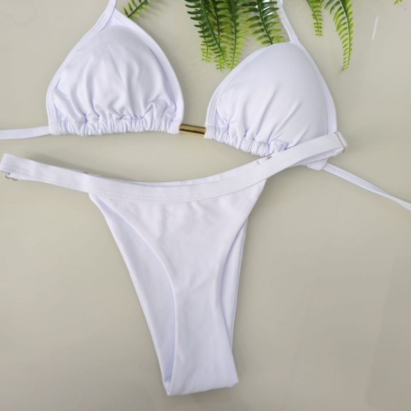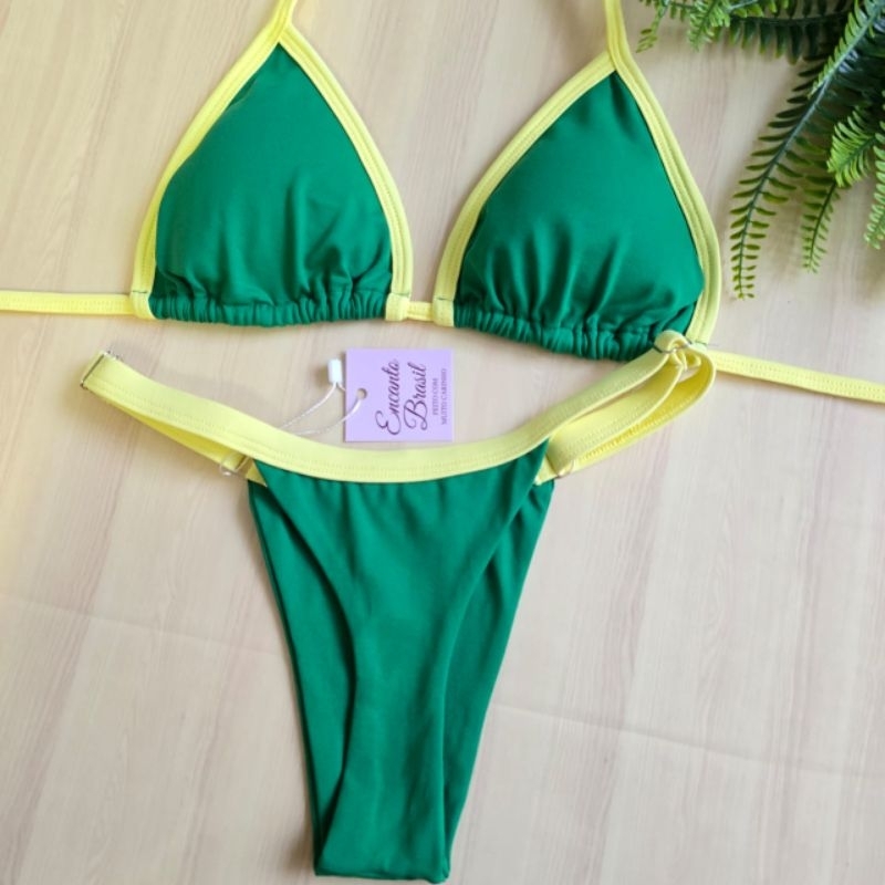 Biquíni Cortininha Fita Fio Dental Marquinha de Bronze Bojo Removível