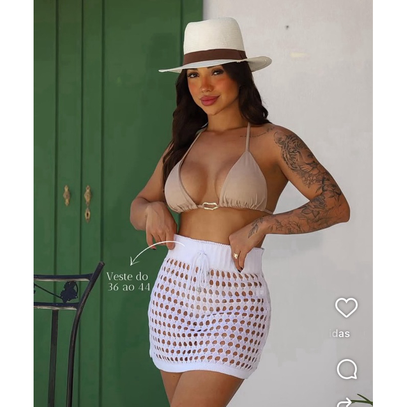 Biquíni Cortininha + Saia Tricot Conjunto Praia Feminino Verão