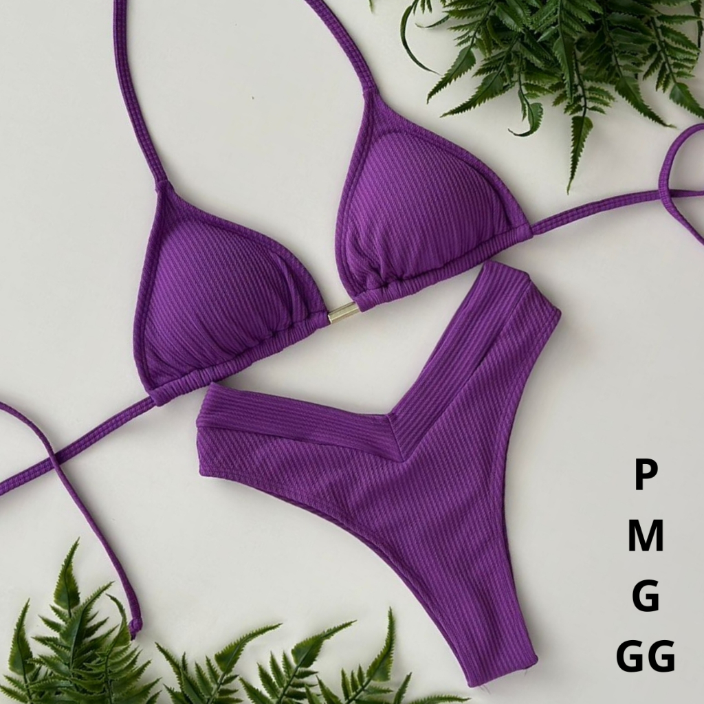 Biquíni EFEITO LIPO Top Cortininha Calcinha Asa Delta Cintura Alta de Cós