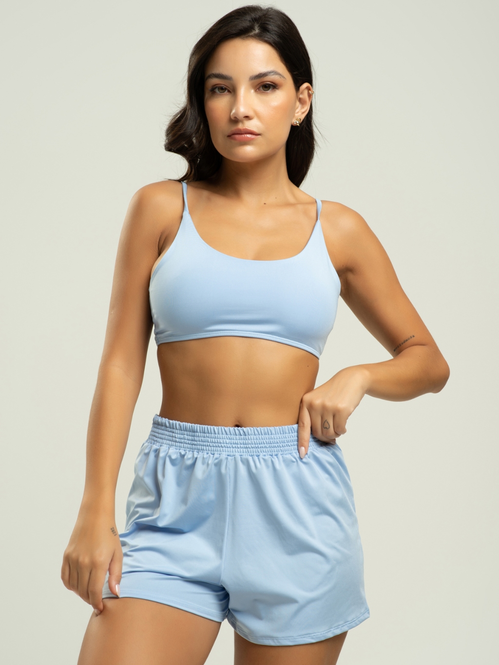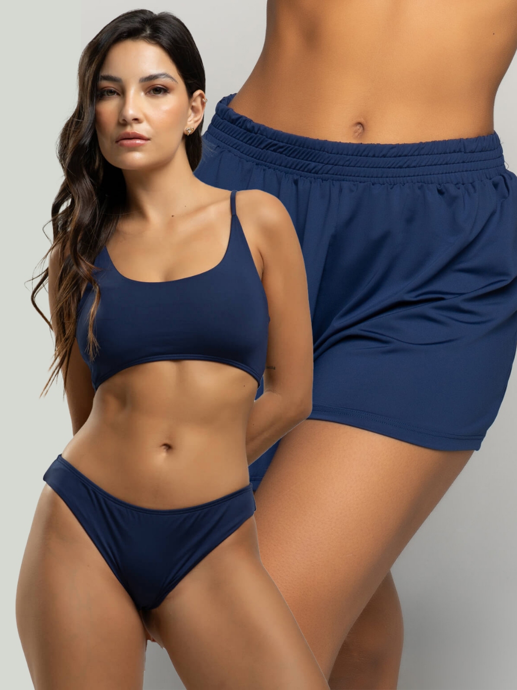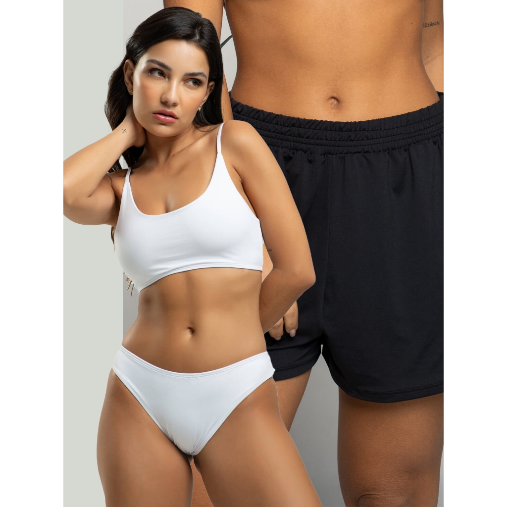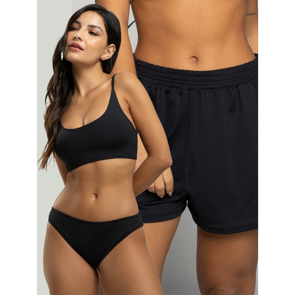 Biquíni Faixa Liso Calcinha Comum Bojo Removivel + Short Curto Liso Tecido Proteção Solar Uv 50+