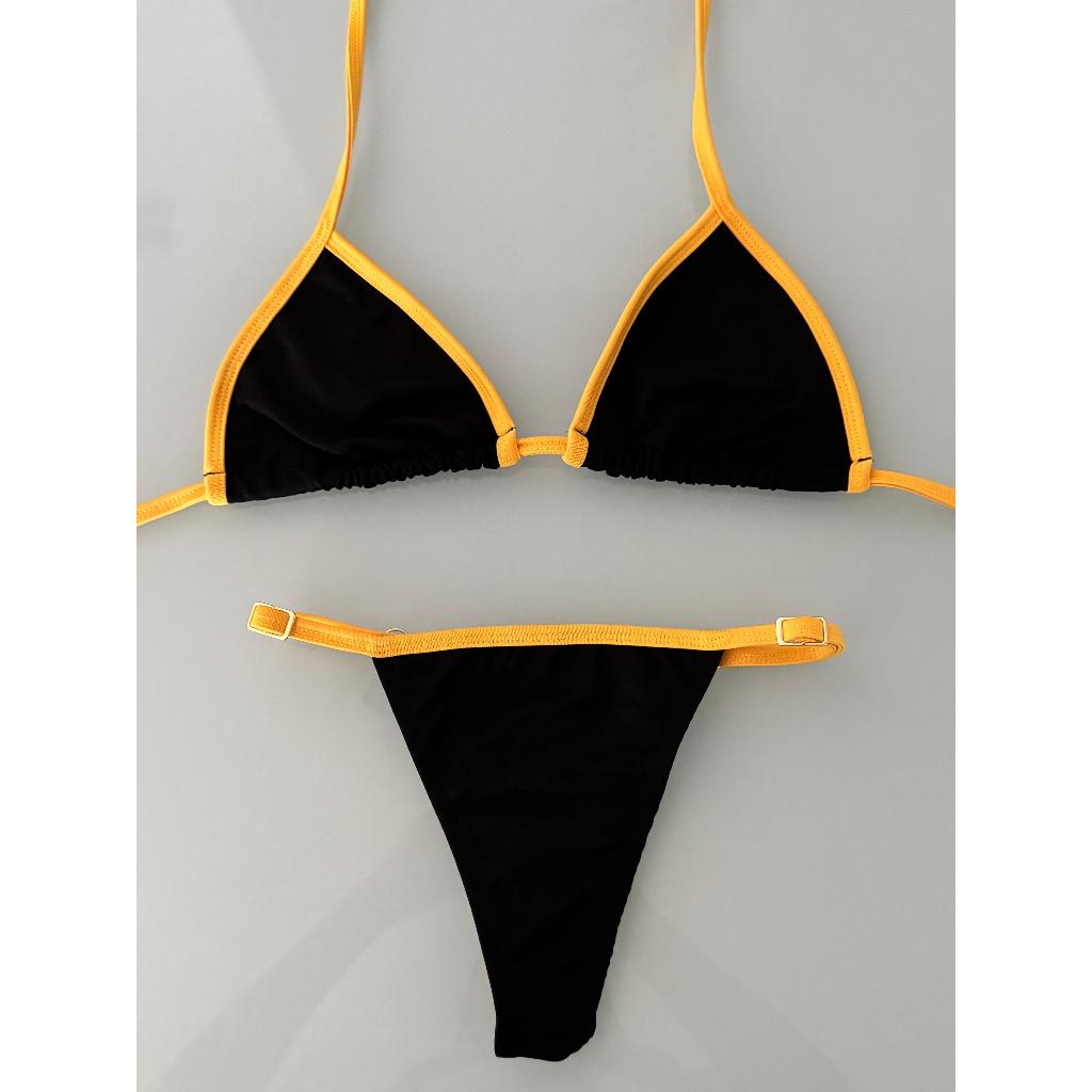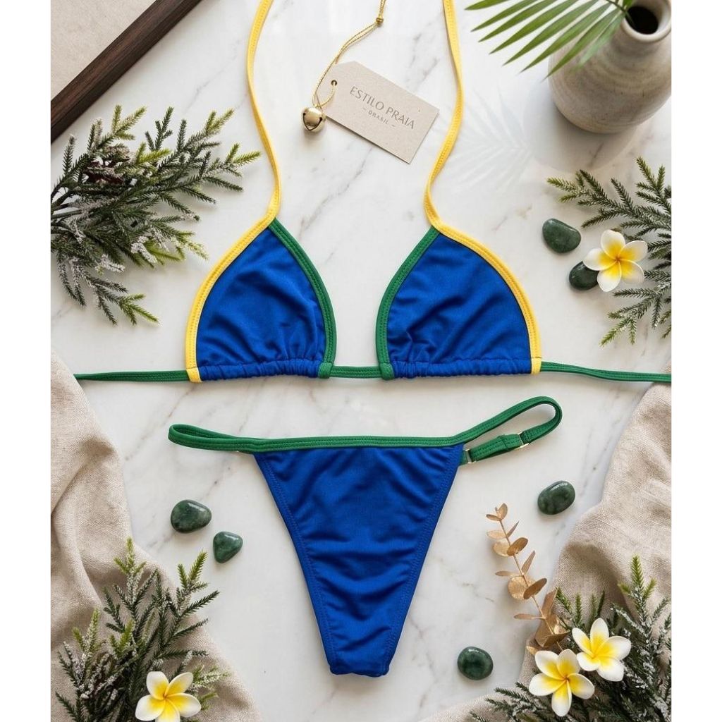 Biquíni Feminino Amarelo Copa Verão Cortininha Regulador Confortável Forrado Sem Bojo Fio Dental Broze Lindo