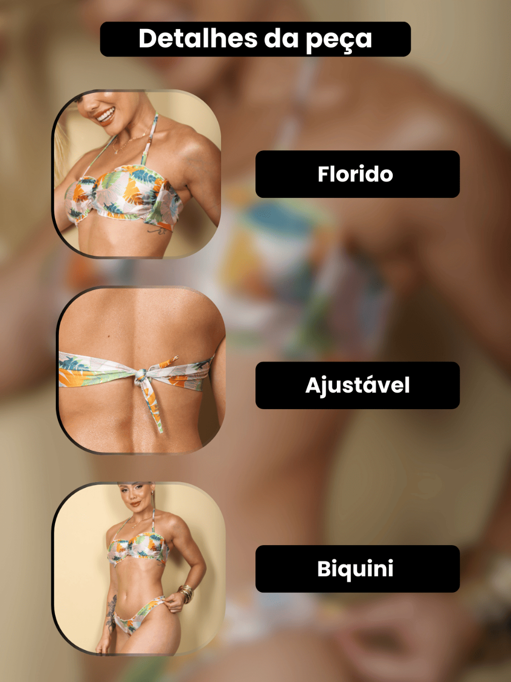 Biquíni Feminino Florido Ajustável Confortável Verão Praia Moda Atual Com Bojo Removível Estampado