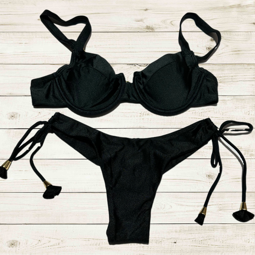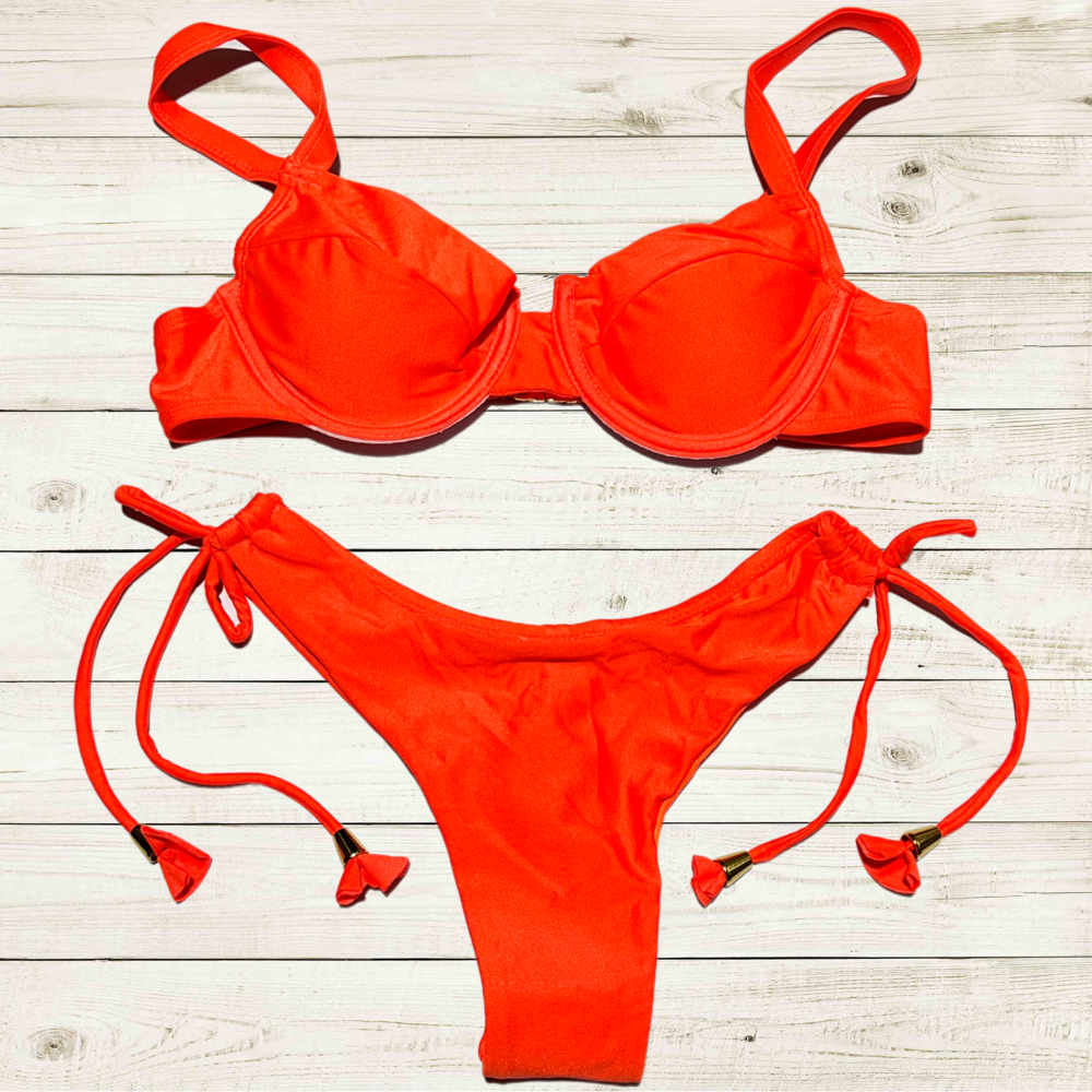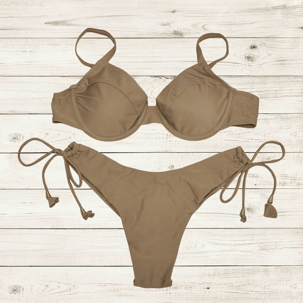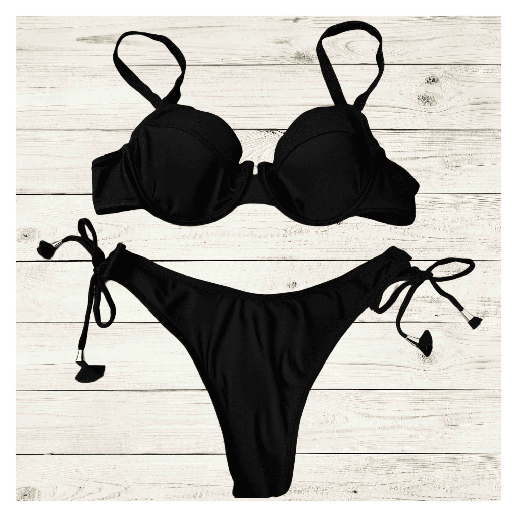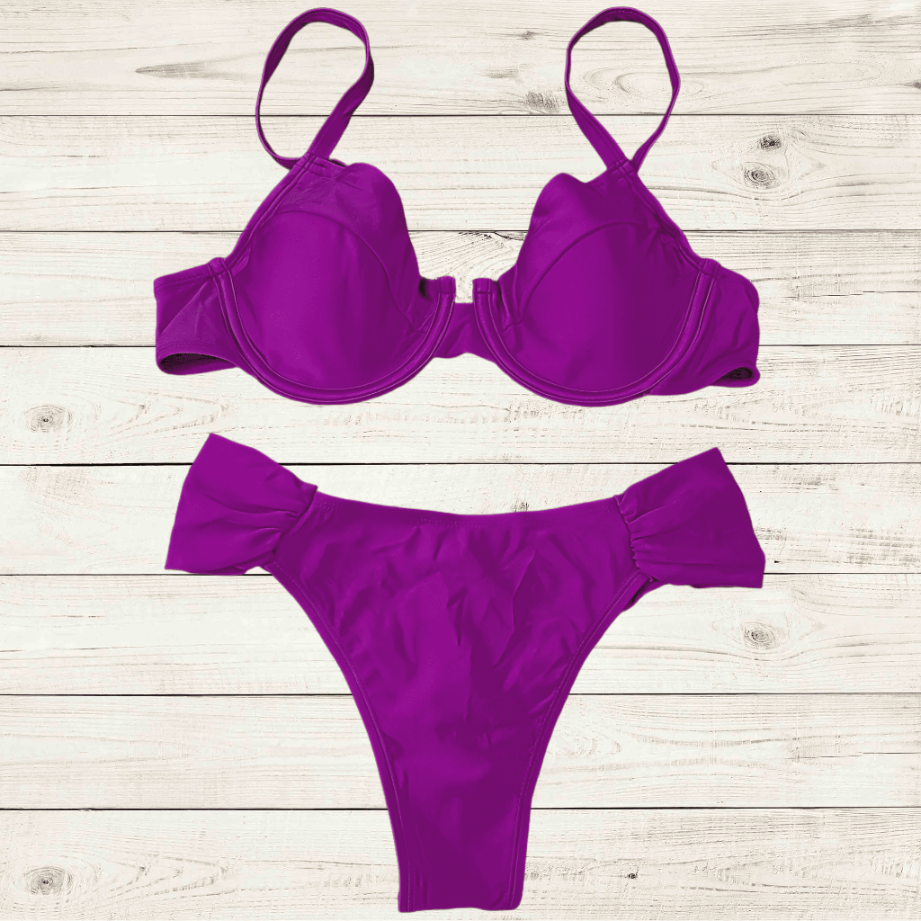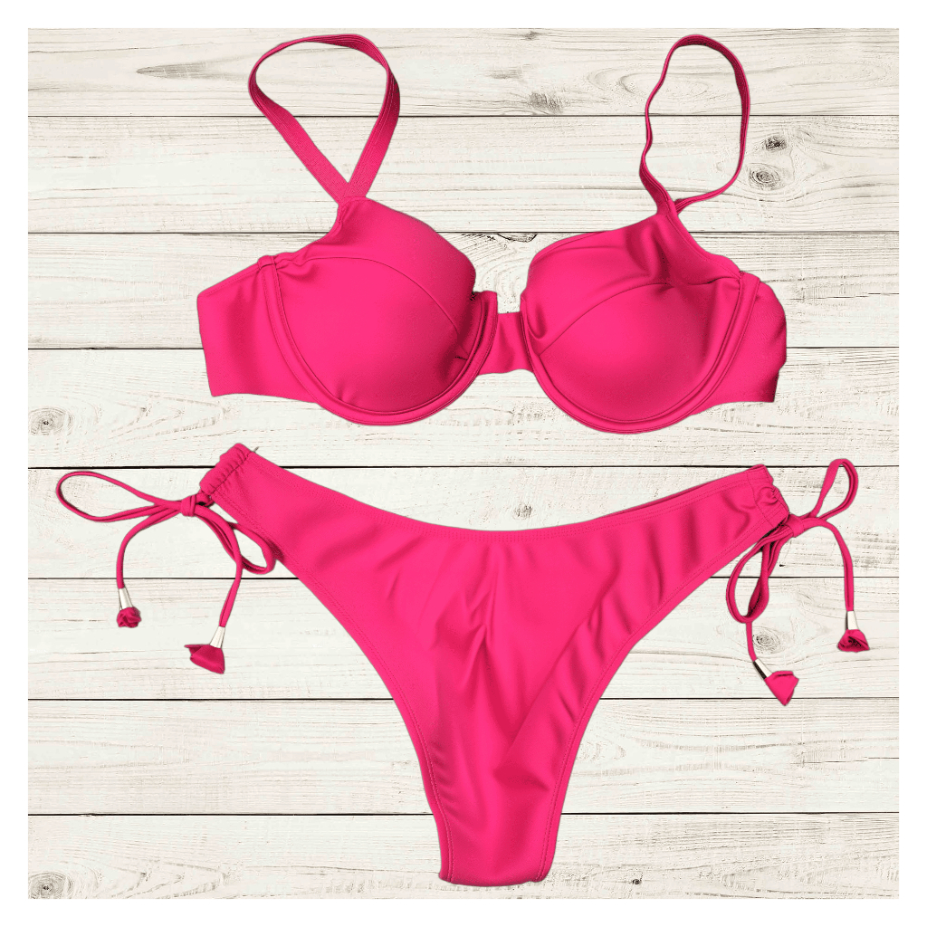 Biquíni Feminino Retro Meia Taça com Aro Calcinha Fio Duplo com bojo removível 5 cores Praia Verão 2024