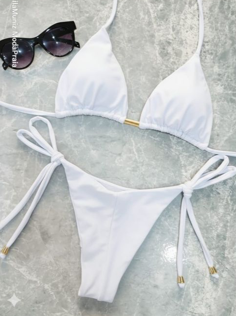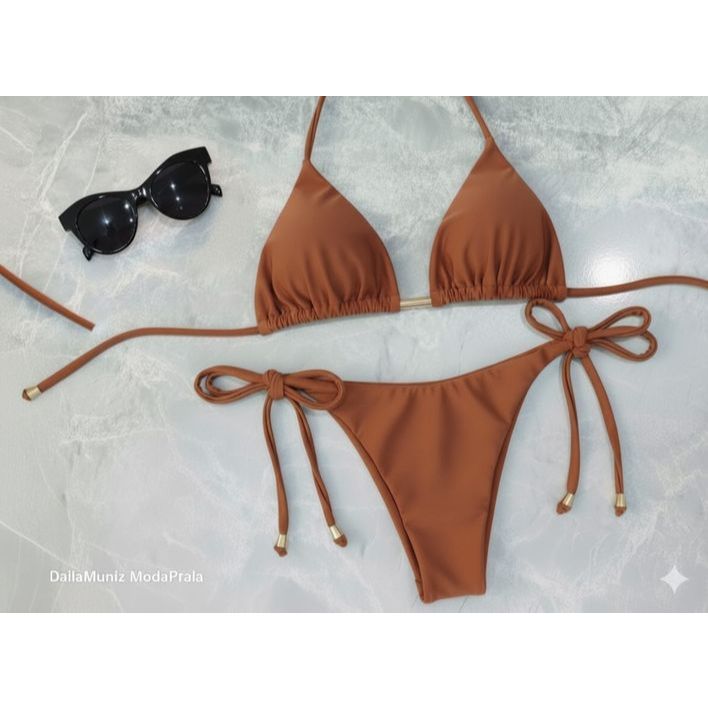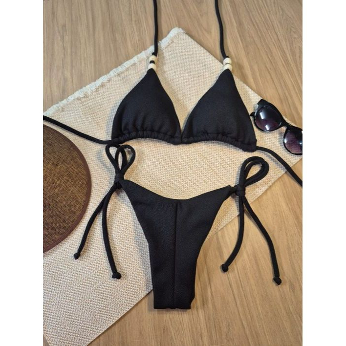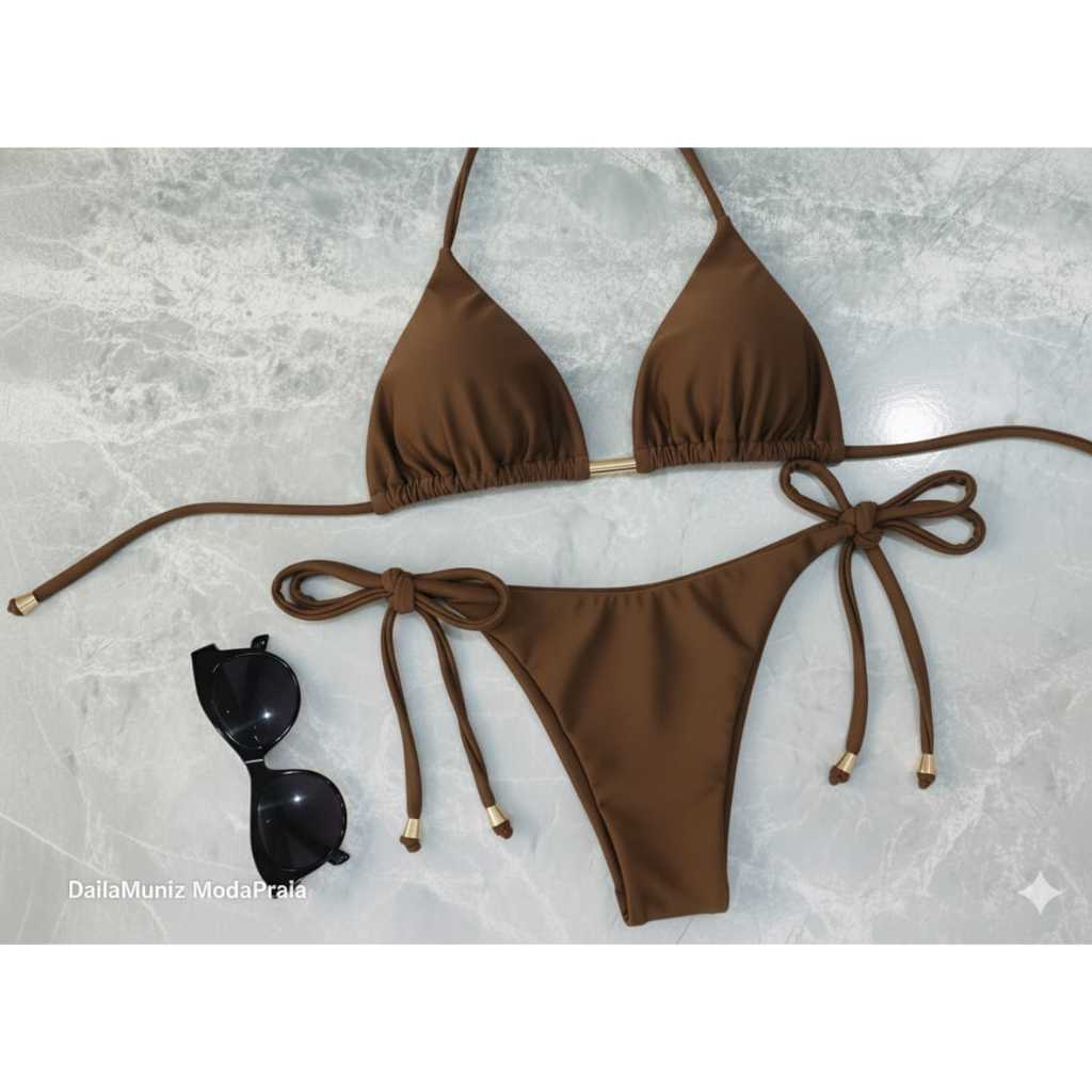Biquíni Fio Duplo com Amarração Lateral – Top Cortininha Feminino Verão 2025