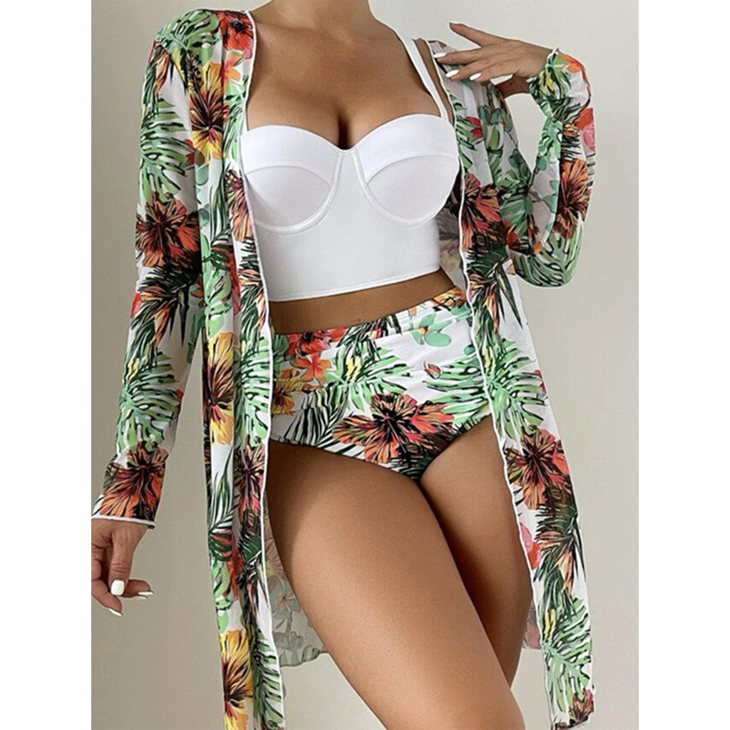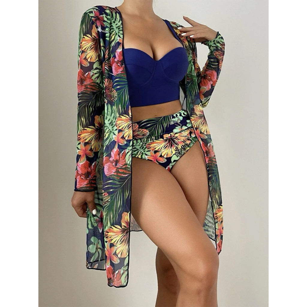 Biquíni Top Bojo Feminino Conjunto Floral 3 Peças Conforto E Elegância Para Seus Dias de Sol
