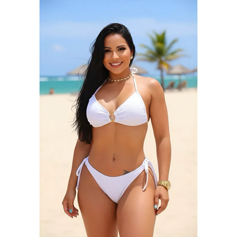 Biquini Conjunto Feminino Cortininha Com Bojo e Calcinha de Amarrar Sexy Verão Praia e Piscina