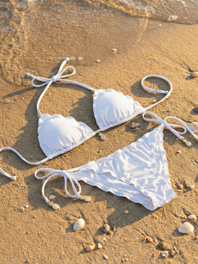 Biquini Cortininha com forro Bojo Removível Calcinha Amarrar Meio Fio Dental