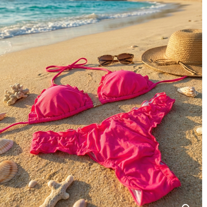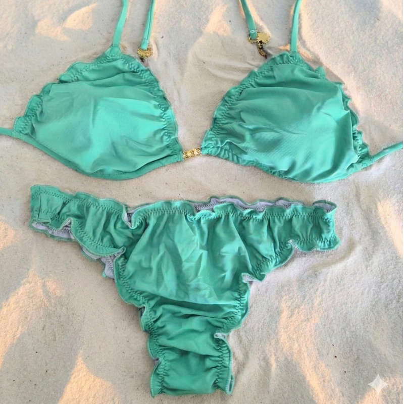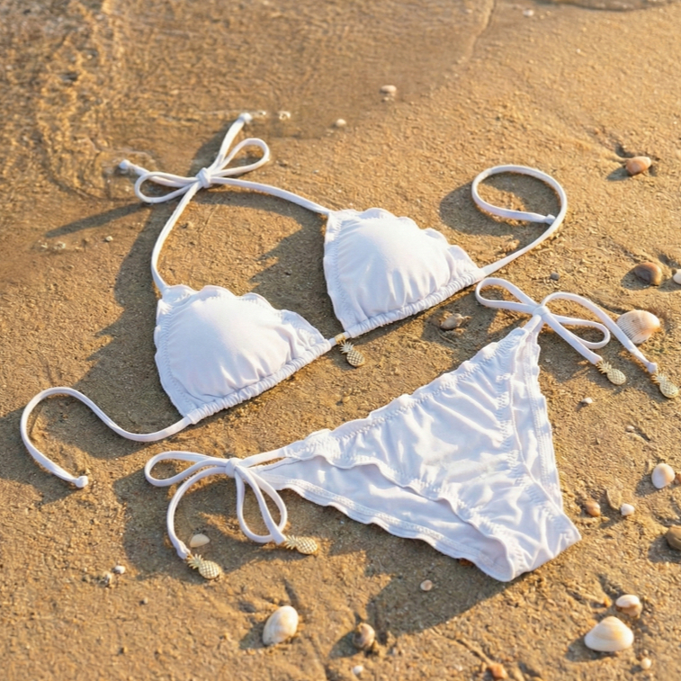 Biquini Cortininha com forro Bojo Removível Calcinha Amarrar Meio Fio Dental