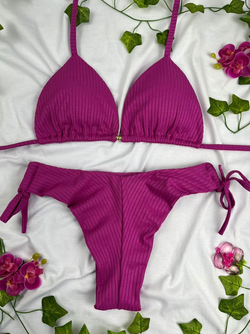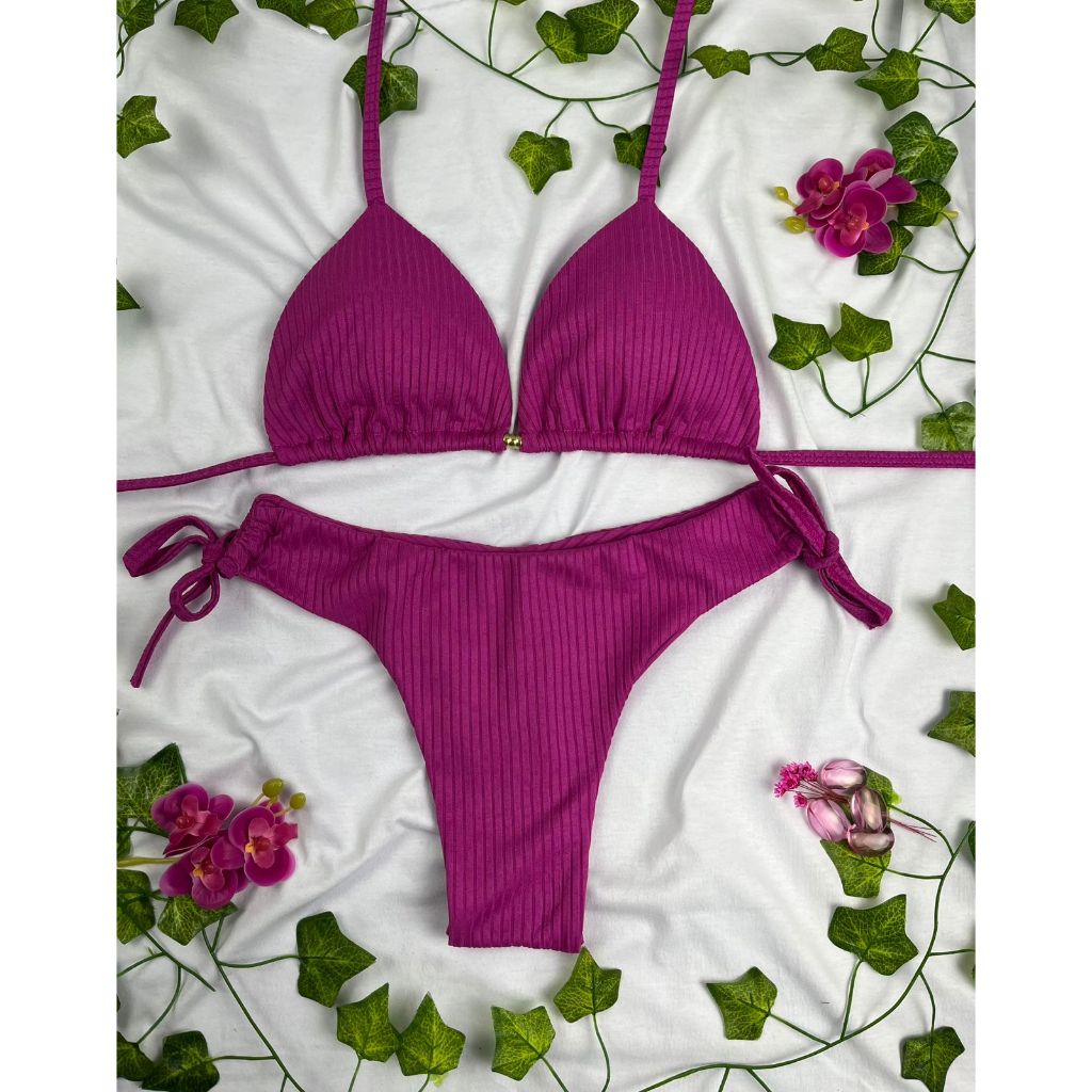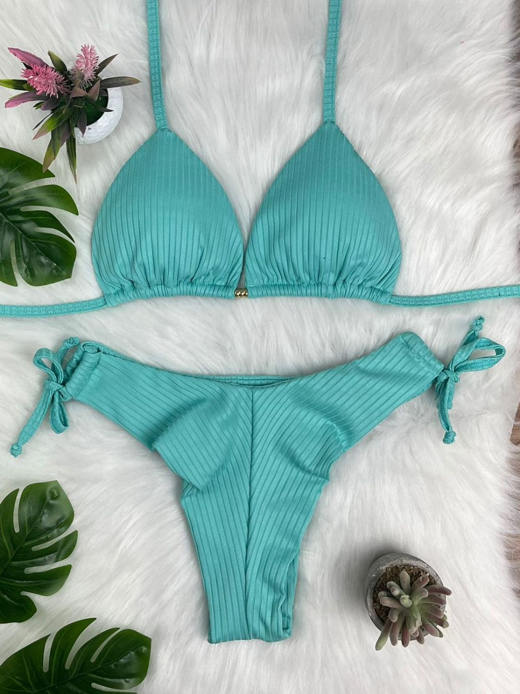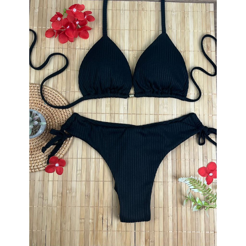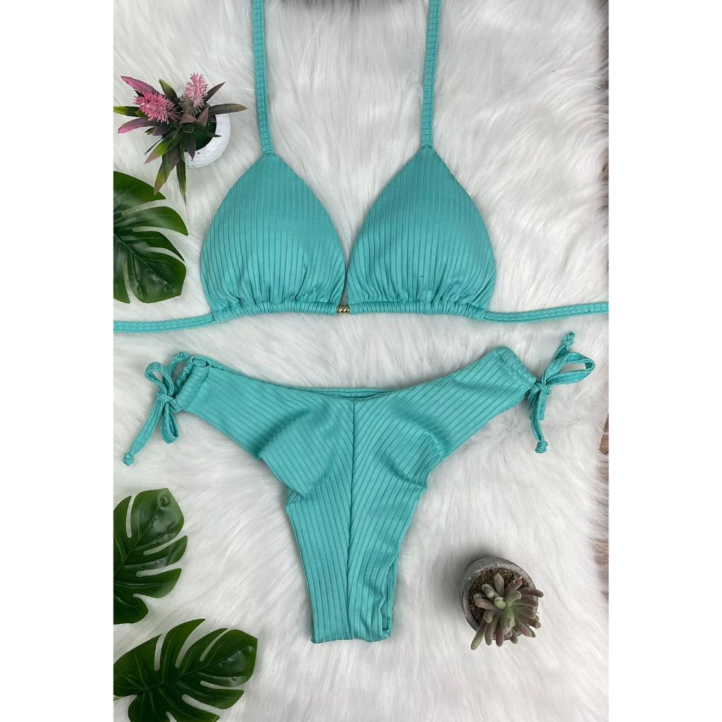 Biquini Cortininha de Amarrar Canelado Fio Duplo de Amarrar Lateral e com Bojo Removível Texturizado