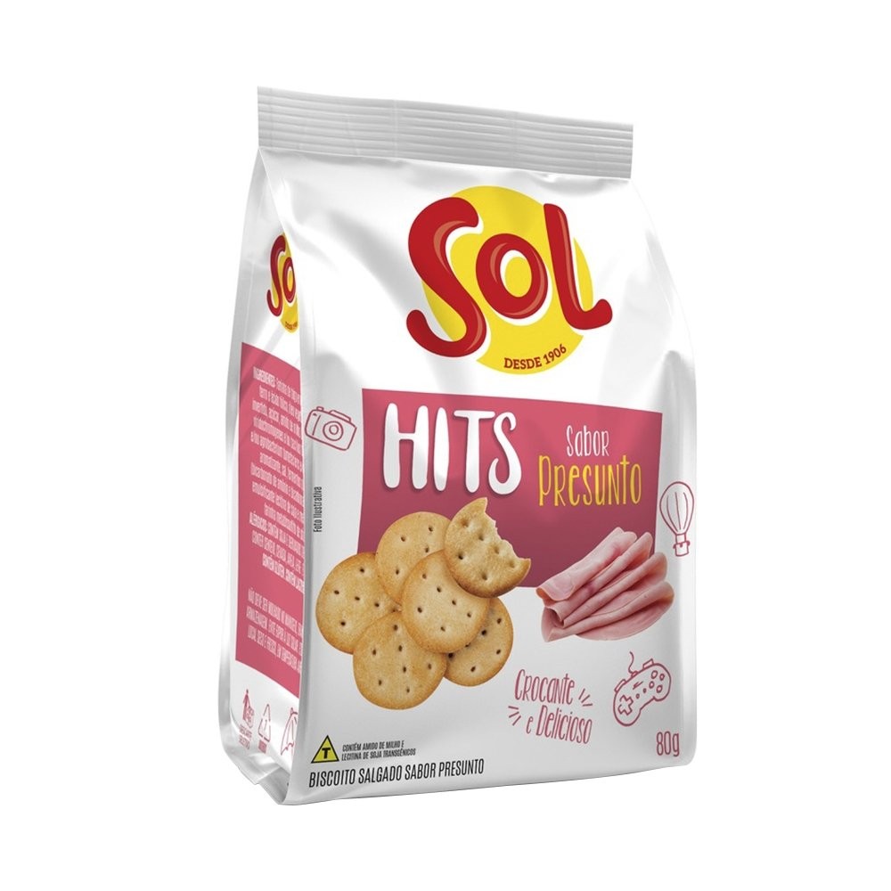 Biscoito Salgadinho Hits Sol Presunto 80g - Embalagem c/ 24 Unidades
