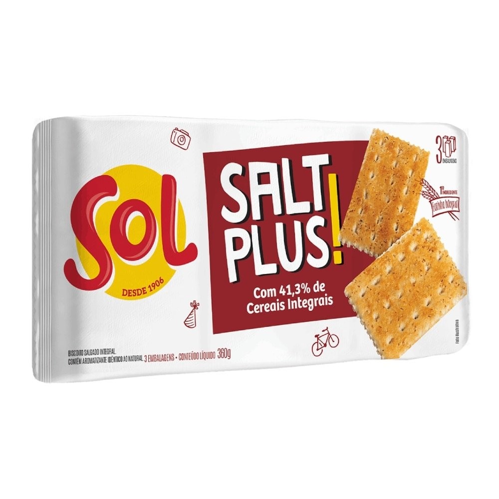 Biscoito Sol Salt Plus Integral 360g - Embalagem com 20 Unidades