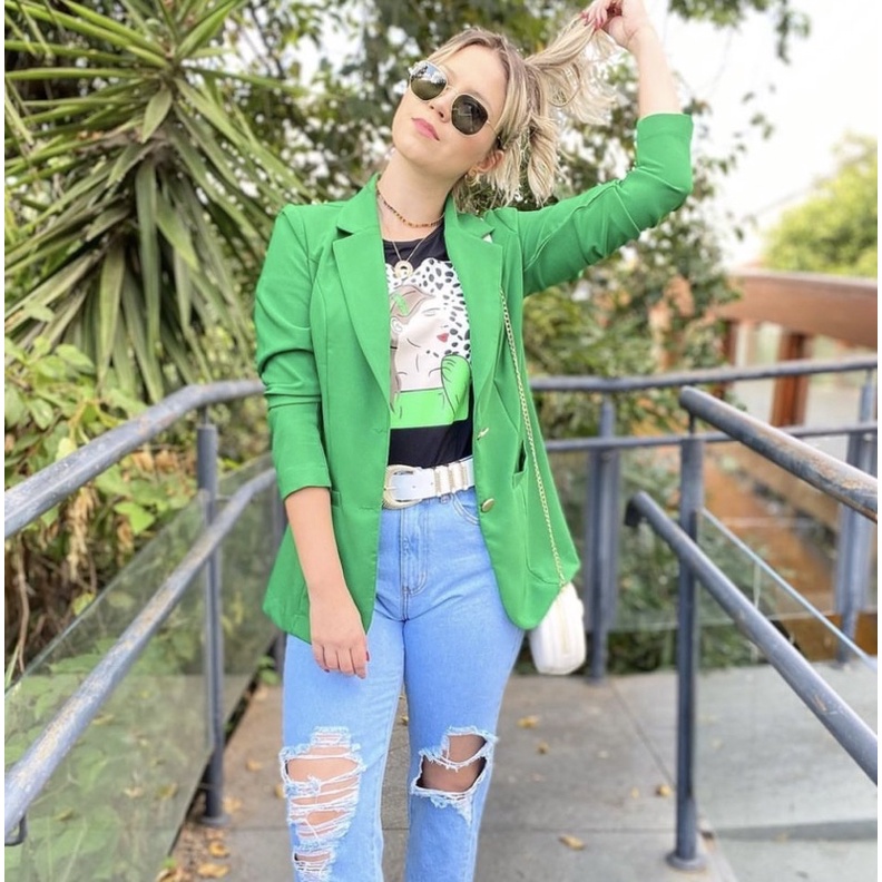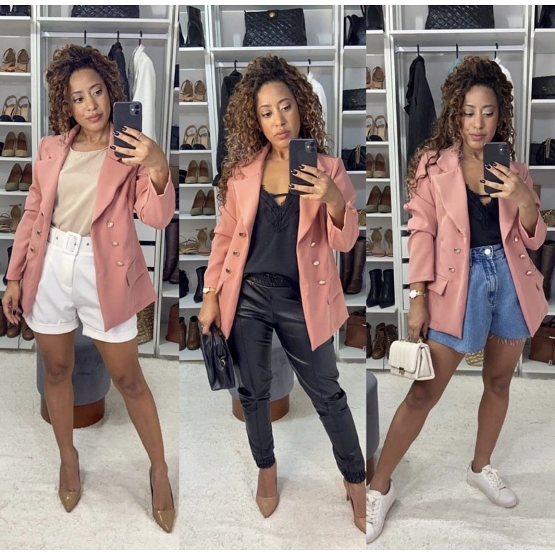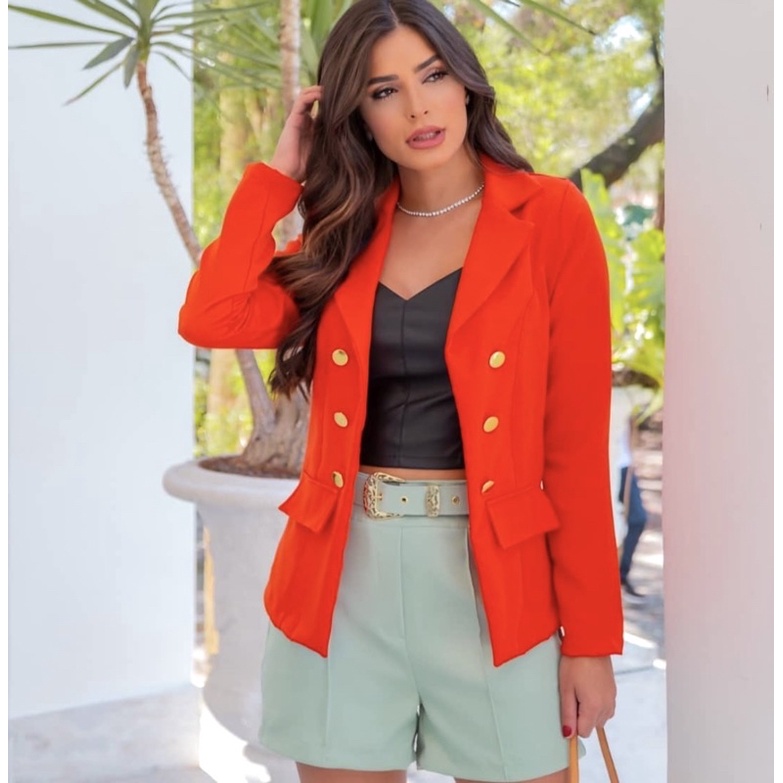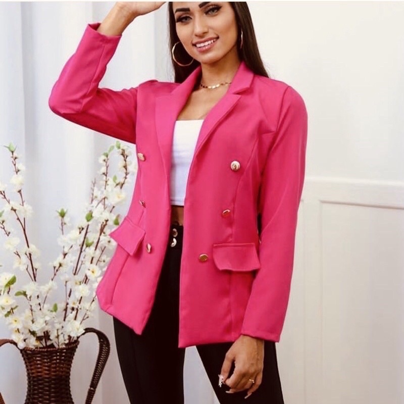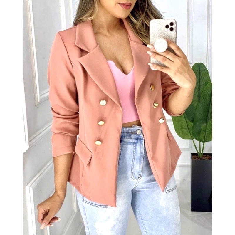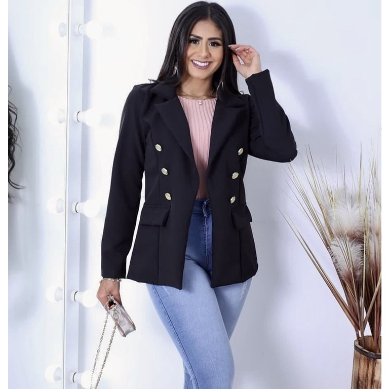 Blazer Feminino Social Luxo Alfaiataria Com Botões Blogueira Super Envio! !
