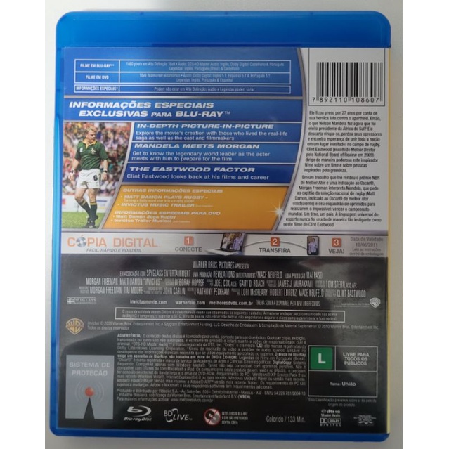 Blu-ray Invictus-Duplo-BD+DVD-Morgan Freeman