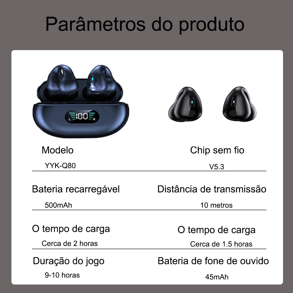Bluetooth 5.3 Fones Ouvido Sem Fio Q80 Clipe Música Com Cancelamento Ruído Fone Chamada Controle