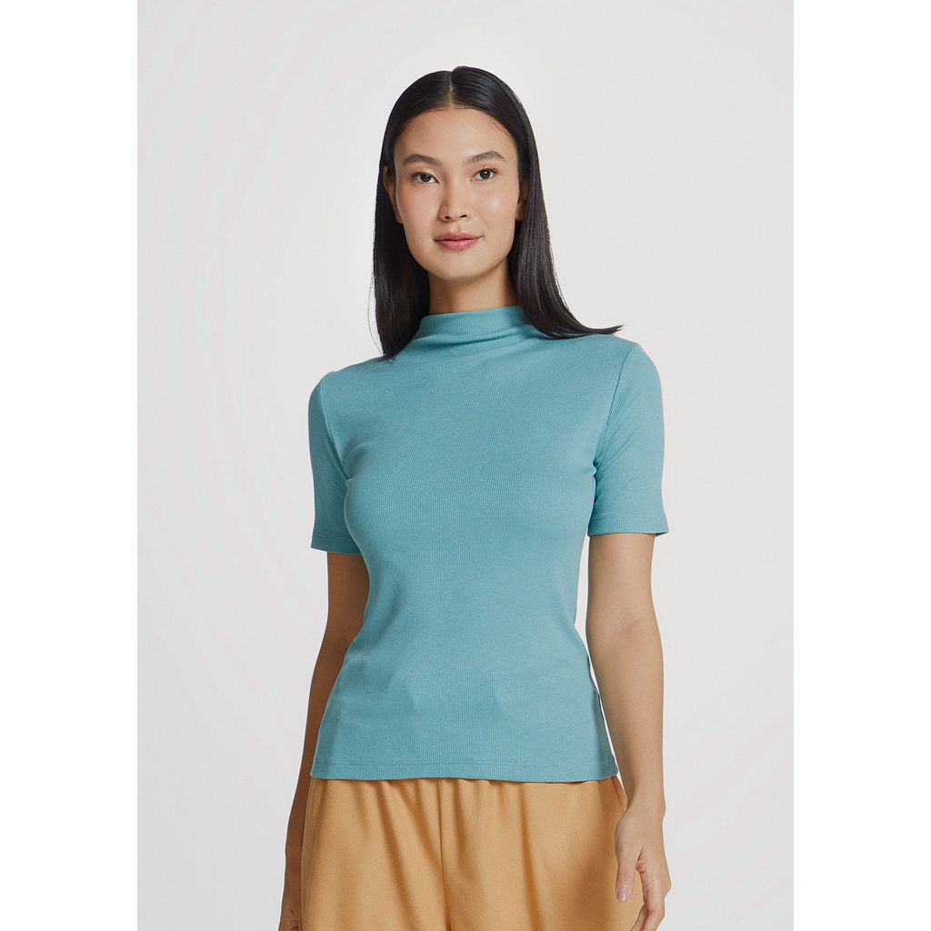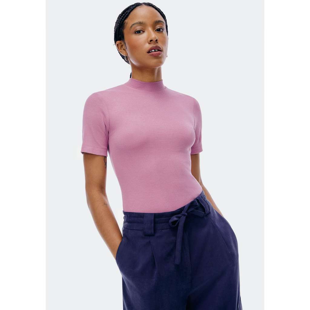 Blusa Básica Feminina Gola Alta Em Ribana Canelada