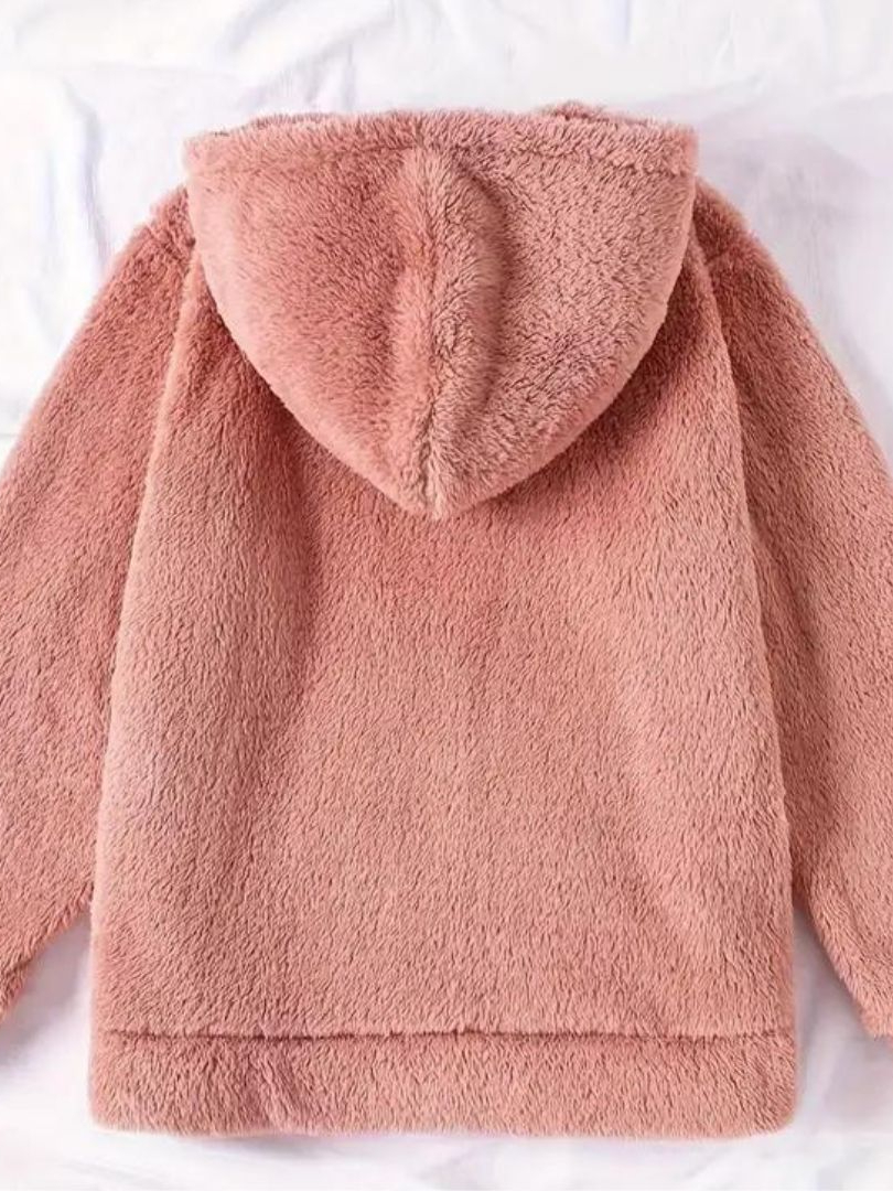 Blusa Fechada Casaco Blusão Bolso Canguru e Capuz Teddy