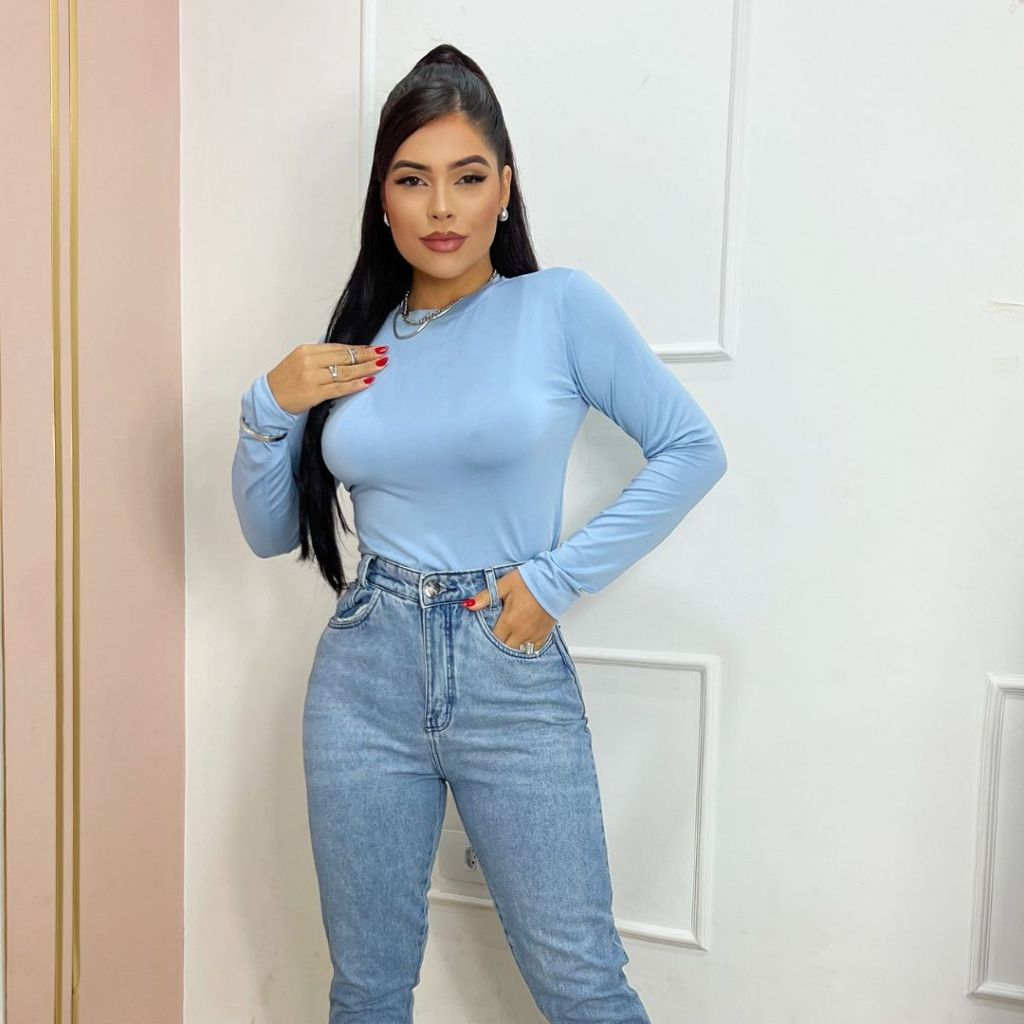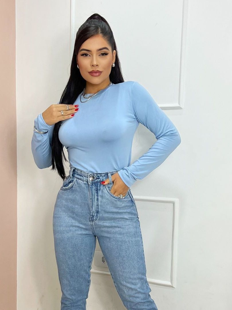 Blusa Feminina Básica Suplex Gola Careca Baixa Manga Comprida Térmica Segunda Pele