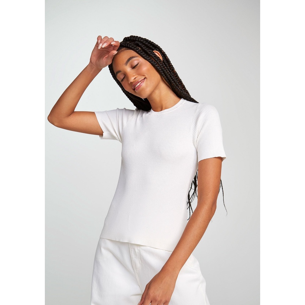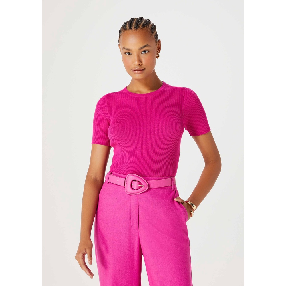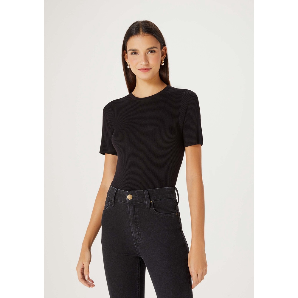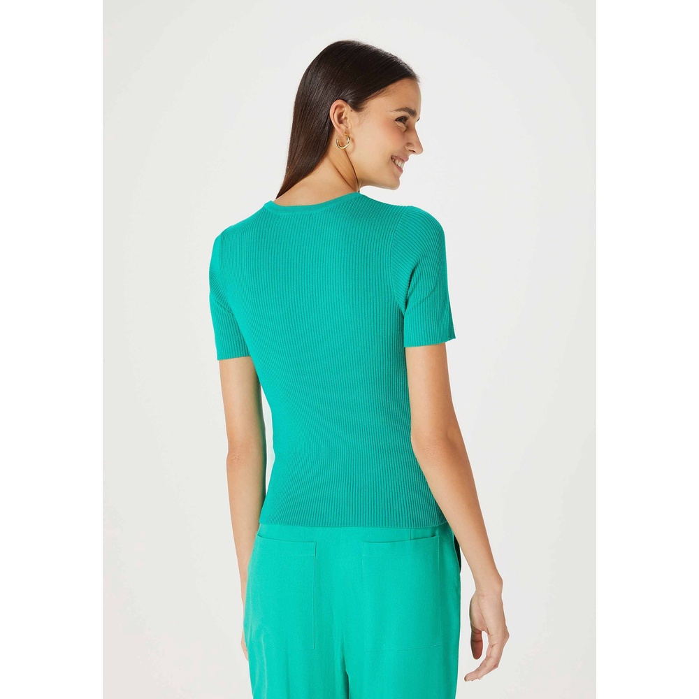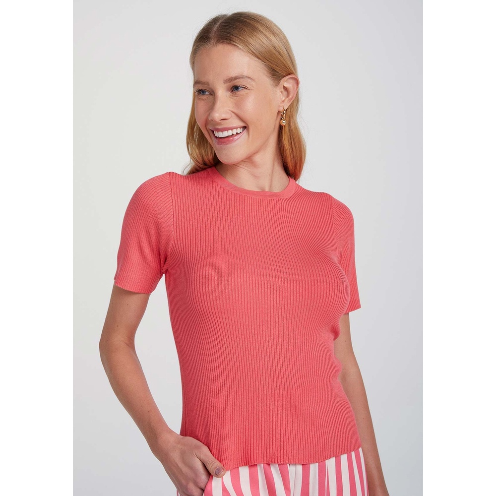 Blusa Feminina Manga Curta Canelada Em Tricô