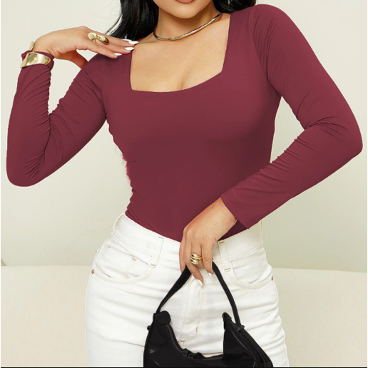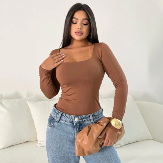 Blusa SUPLEX feminina Manga Longa Gola Quadrada Moda Inverno