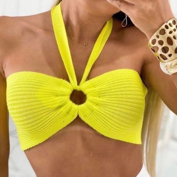 Blusa Top Cropped Faixa Multiformes Tricô Sexy Tomara Que Caia Verão 2026 Cores Tamanho Único 34-50