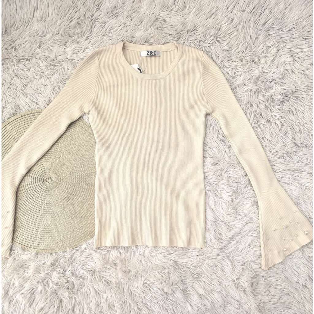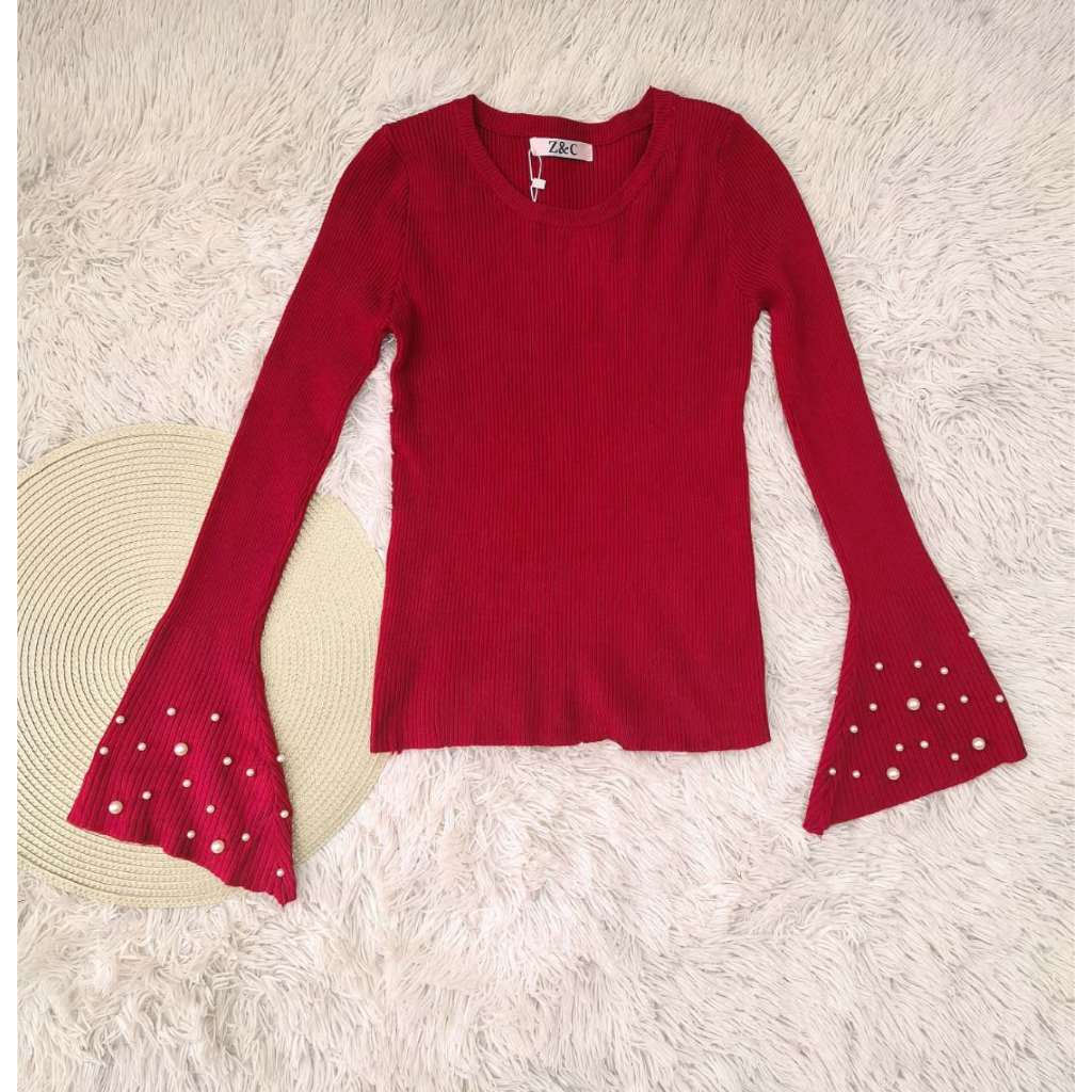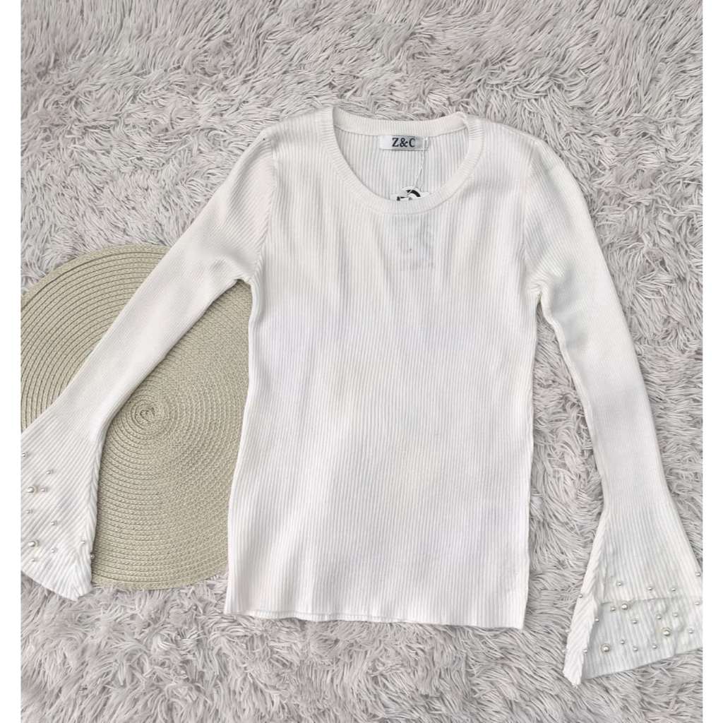 Blusa feminino com mangas largas e pérolas