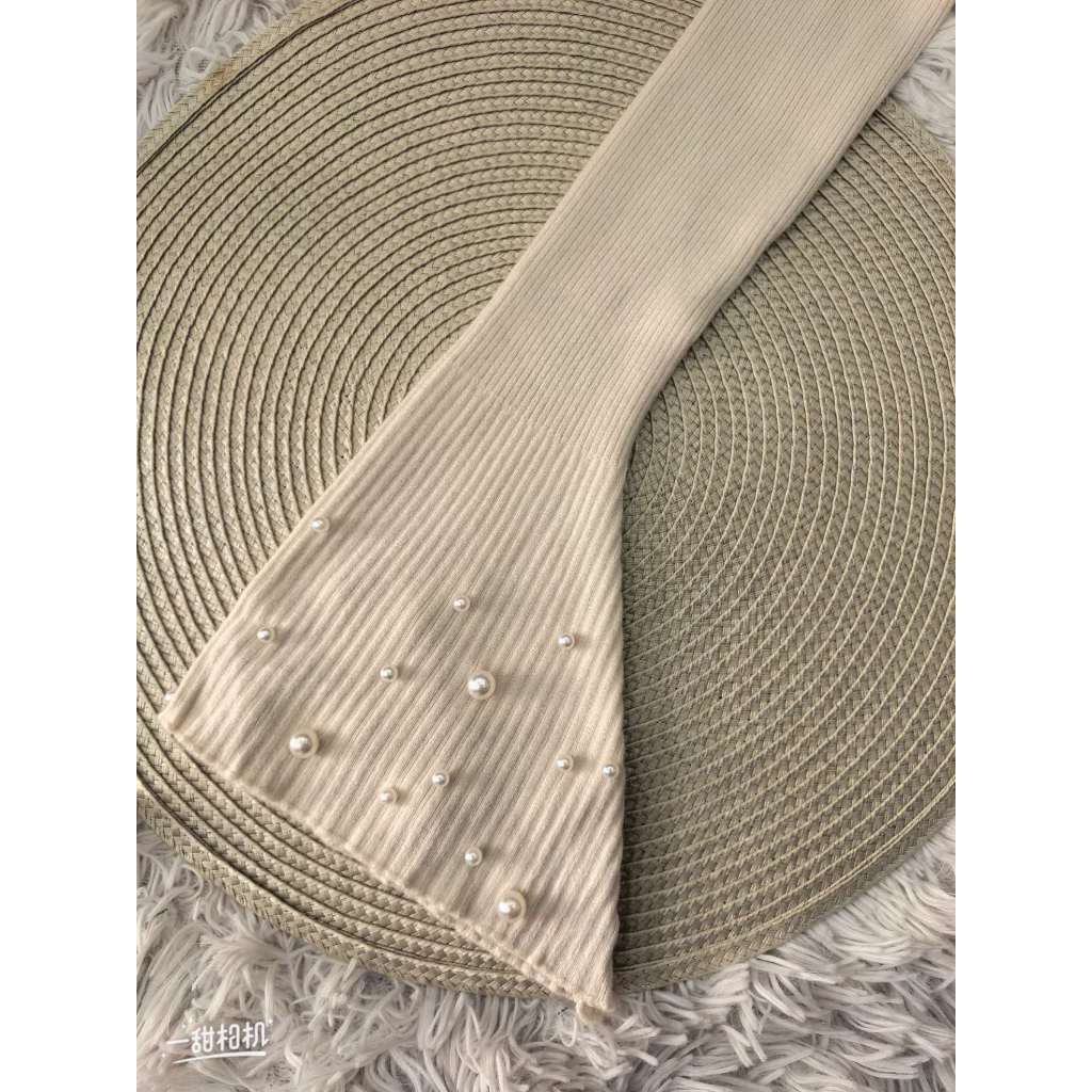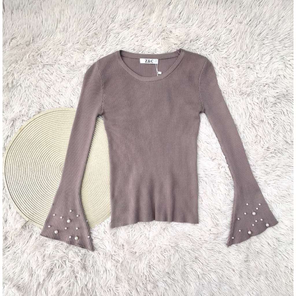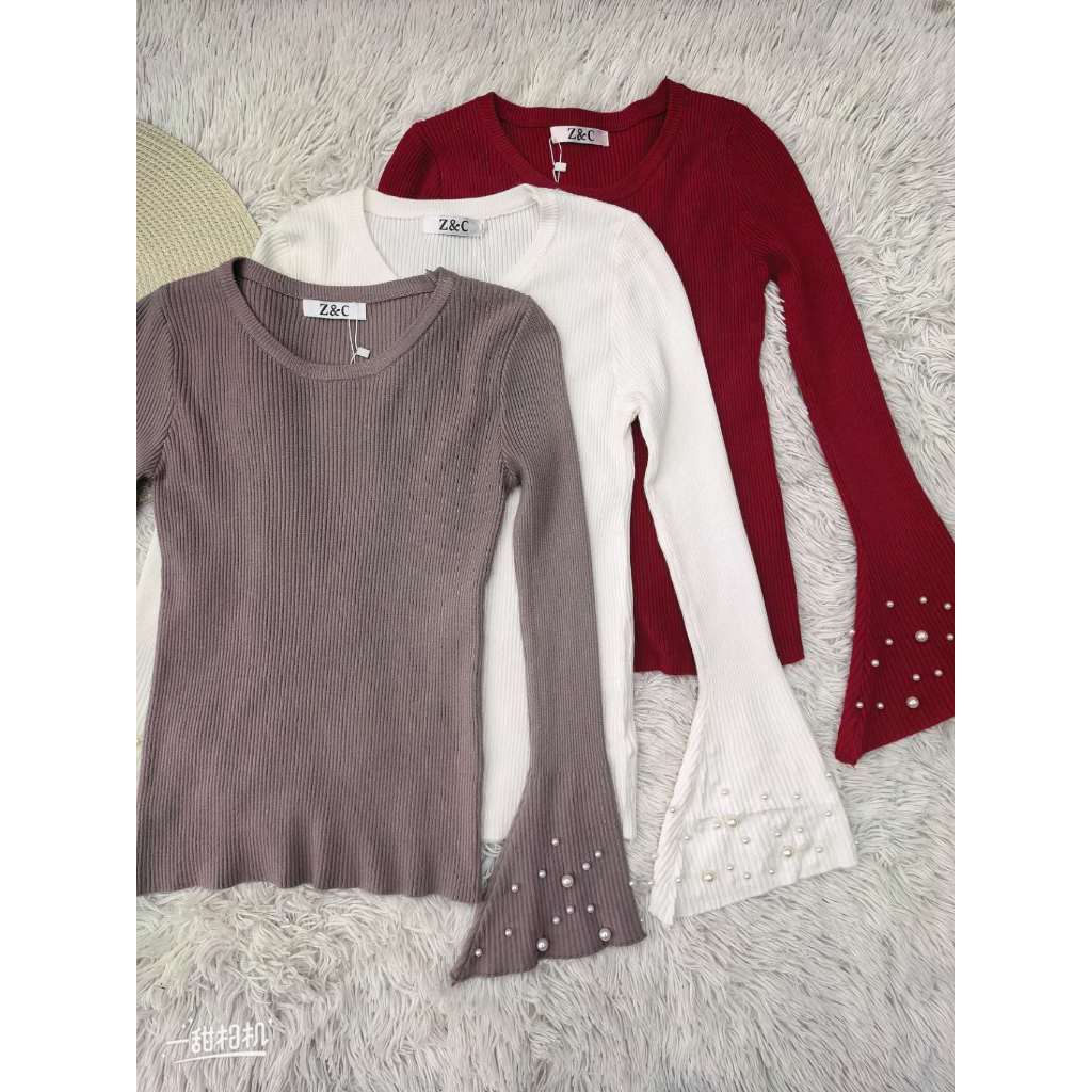 Blusa feminino com mangas largas e pérolas