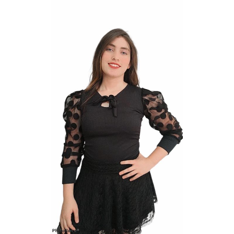 Blusas Femininas Moda Evangelica Social Lacinho Manga Comprida Tule Super Elegante