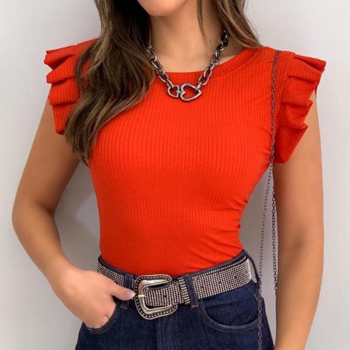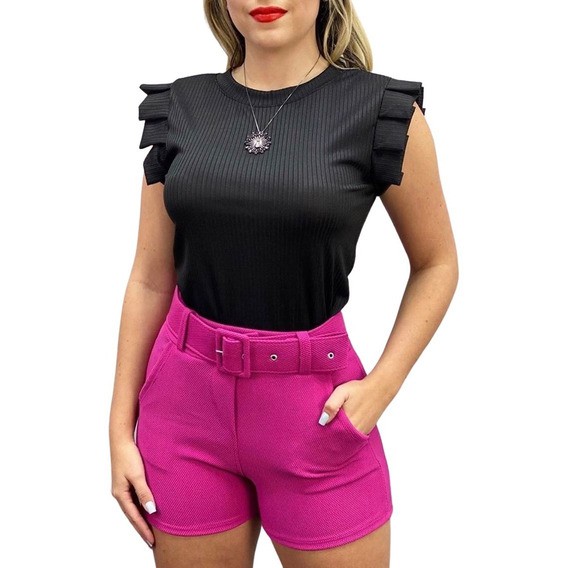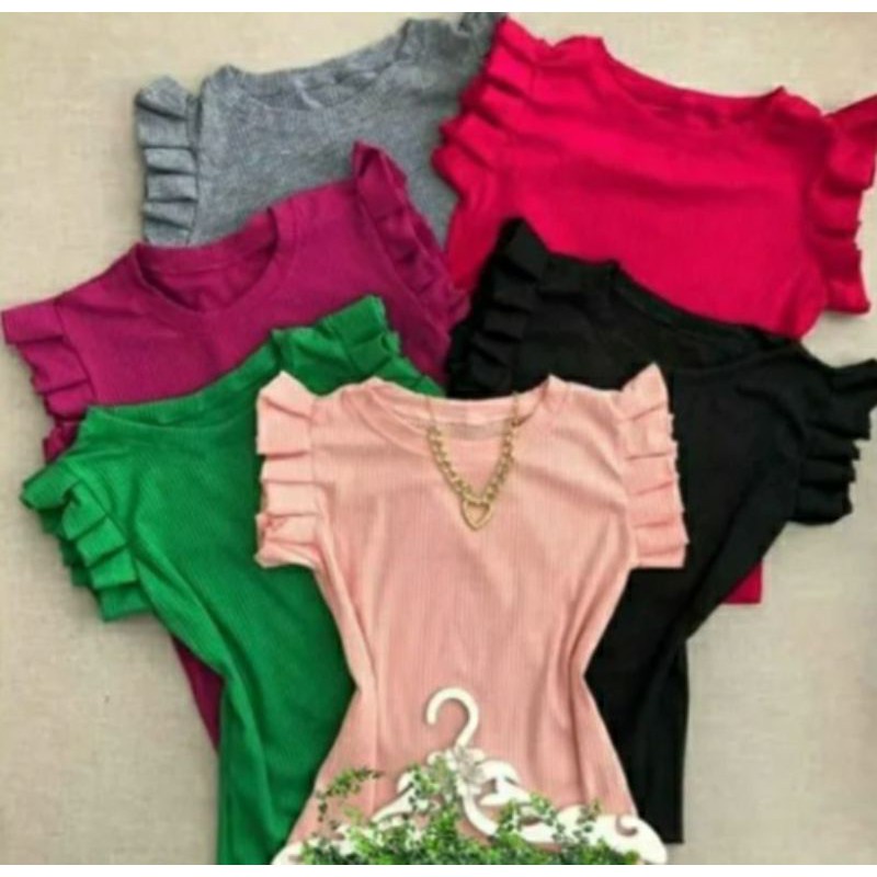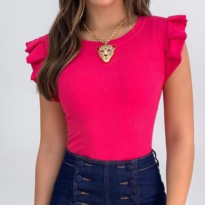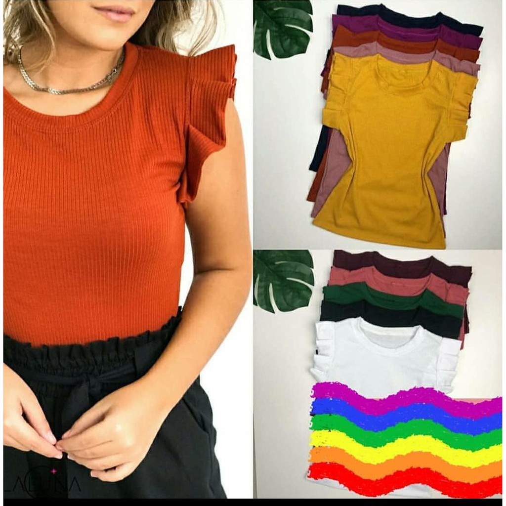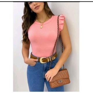 Blusinha Canelada Com Babadinho Nos Ombros Feminina Moda