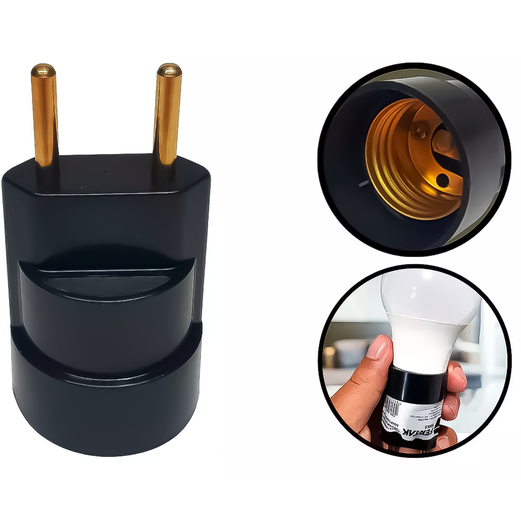 Bocal Para Lâmpada Termoplástico Preto Soquete E27 Resistente Durável Bivolt De Tomada