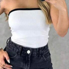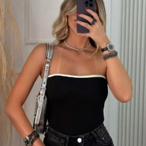 Body Básico Tomara que Caia Bicolor Moda Tendência Verão 2024