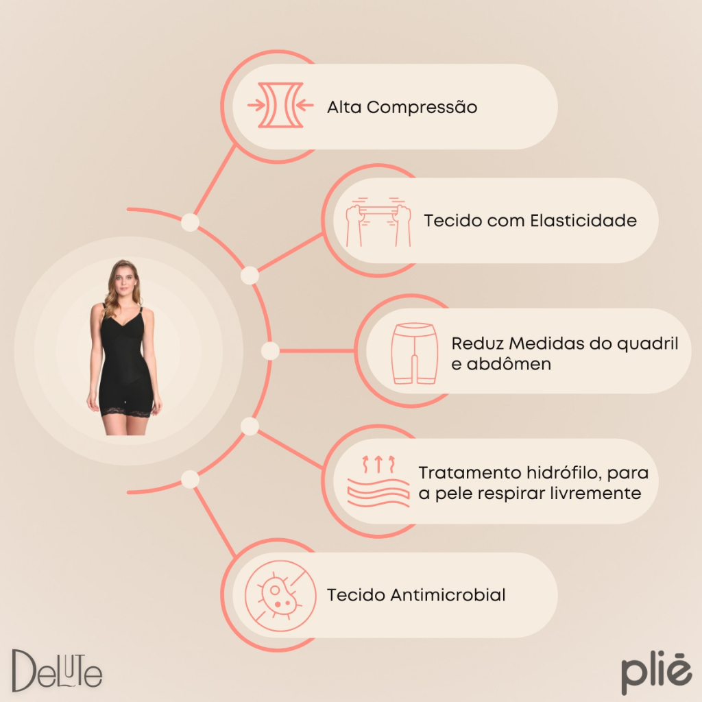 Body Modelador Redutor Plié Linha Shades Costas Decote U Body Shorts