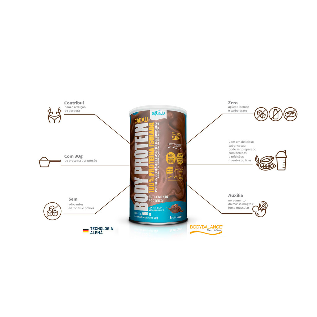 Body Protein Equaliv Sabor Cacau 600g Zero Proteina do Leite Ajuda Ganhar Massa Muscular